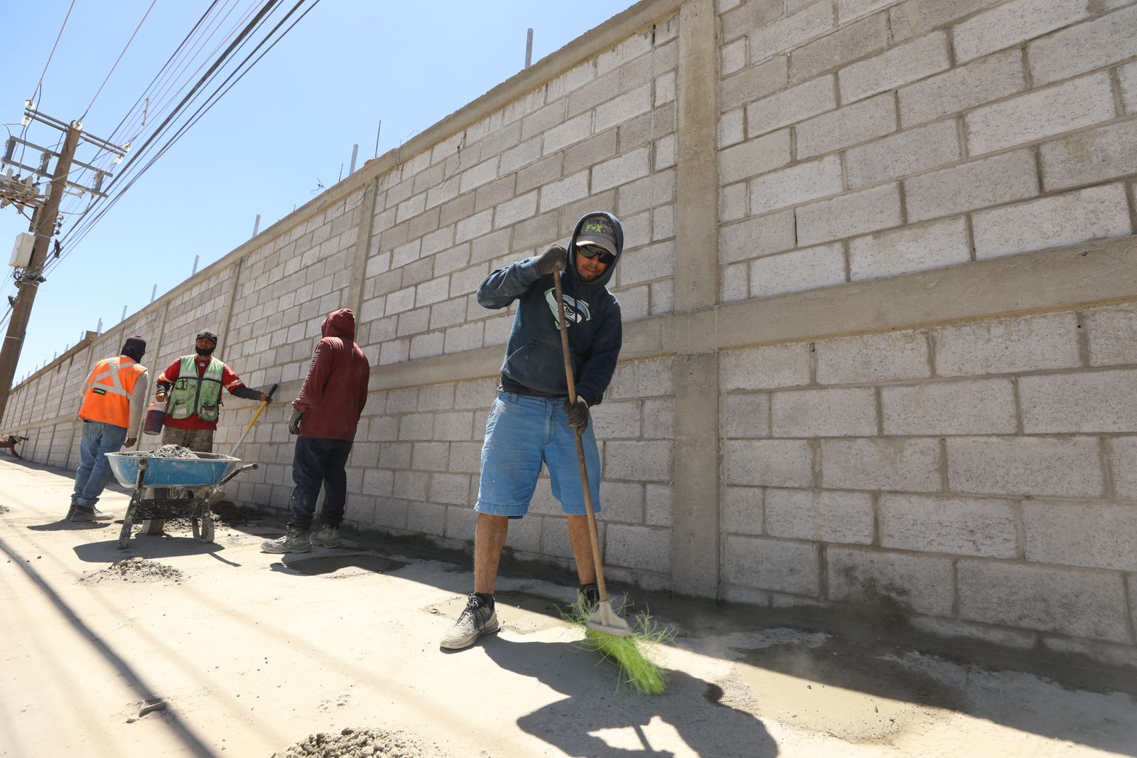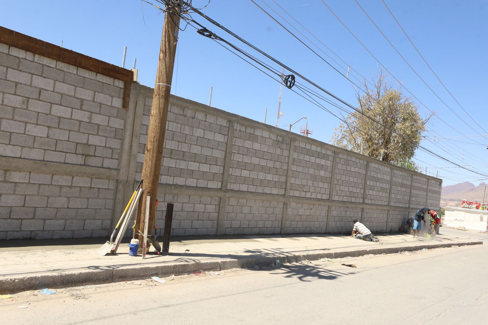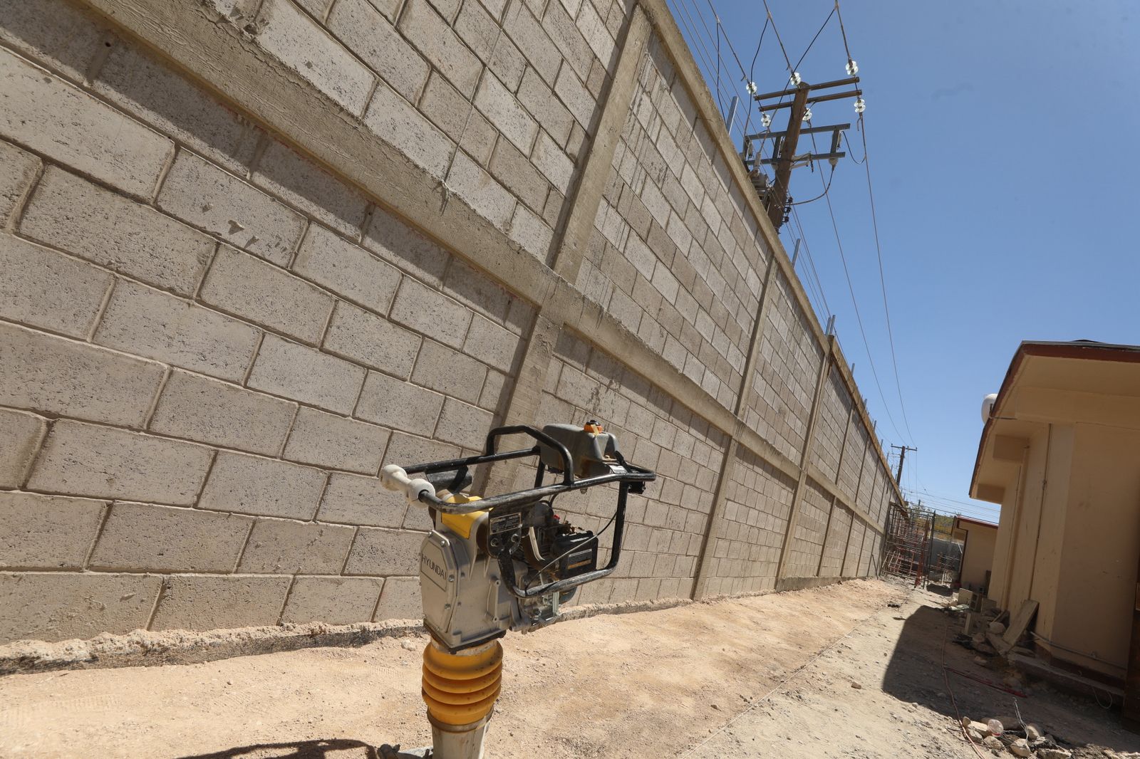 La Dirección General de Obras Públicas trabaja en la rehabilitación de una barda perimetral de la Escuela Primaria Insurgentes, ubicada entre la avenida 16 de Septiembre y la calle Miguel Hidalgo en la colonia Insurgentes.