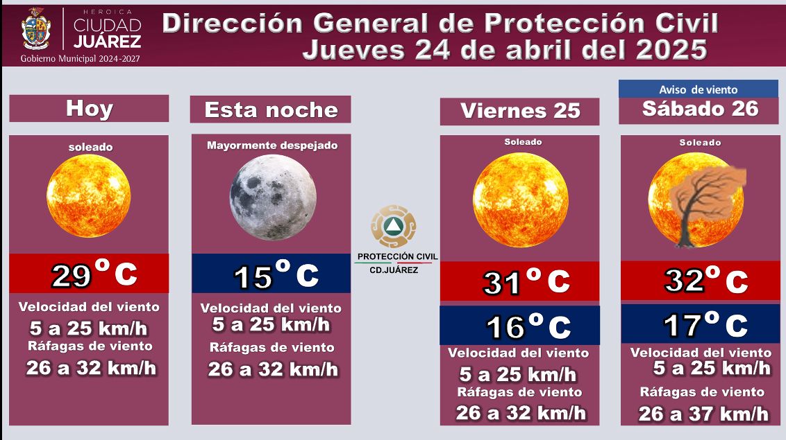 La Dirección General de Protección Civil del Municipio informa sobre las condiciones meteorológicas para los próximos días en esta ciudad.