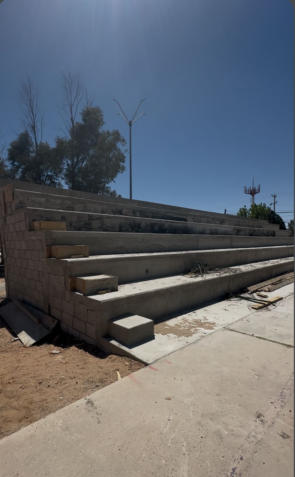 Actualmente la dependencia trabaja en la colocación de pasto sintético en diversas áreas del parque, además de avanzar en la construcción de las gradas de la cancha.