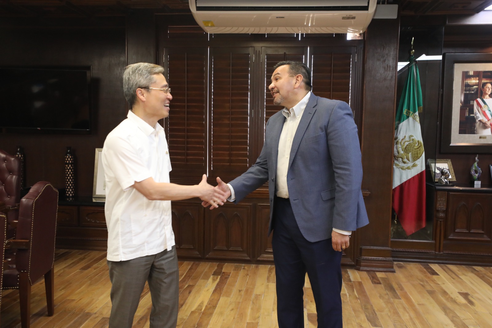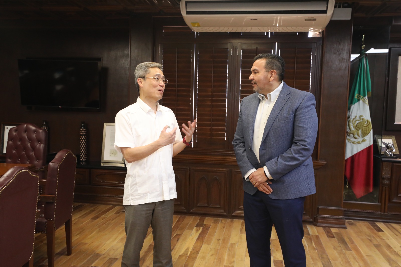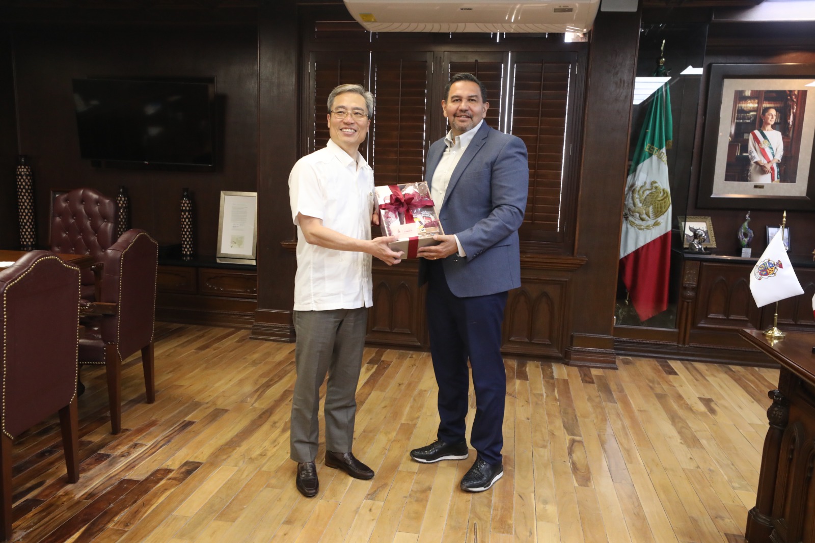 En una visita de cortesía, este día el Presidente Municipal, Cruz Pérez Cuéllar, recibió en su oficina al representante en México de la Oficina Económica y Cultural de Taiwán, Iván Lee.