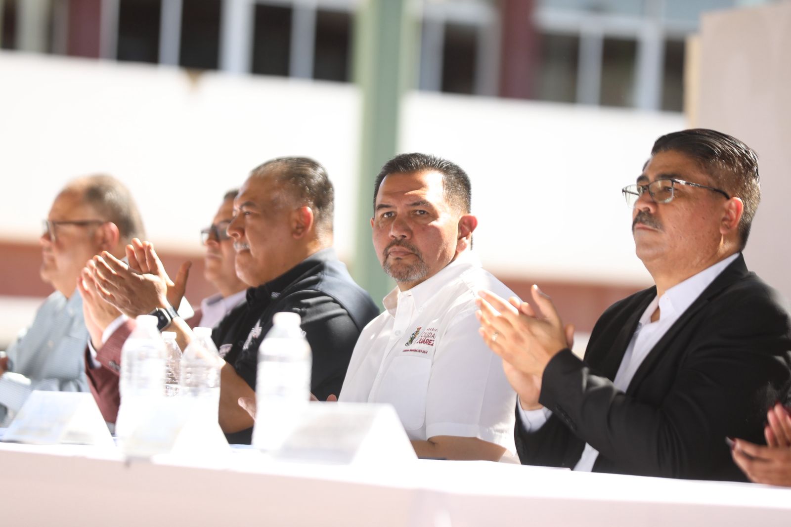También el comisionado responsable del DGETI, Jesús Gerardo Arroyo Gutiérrez y el secretario de Seguridad Pública Municipal, César Omar Muñoz Morales.