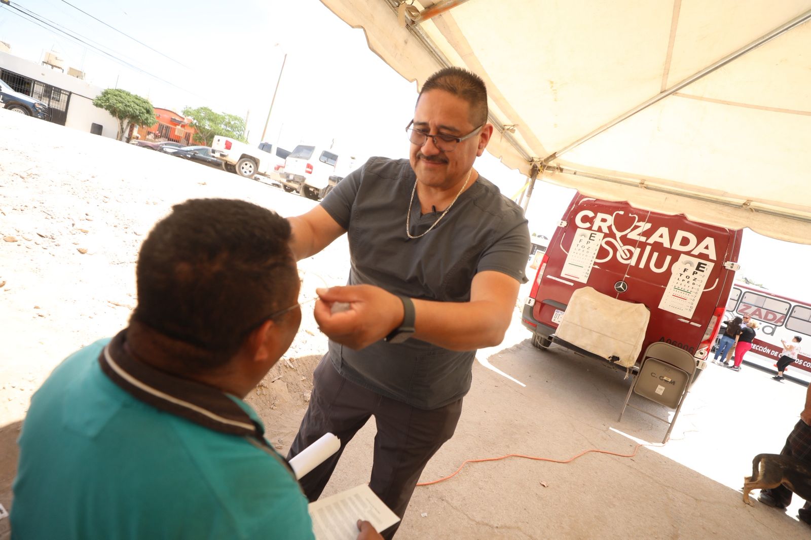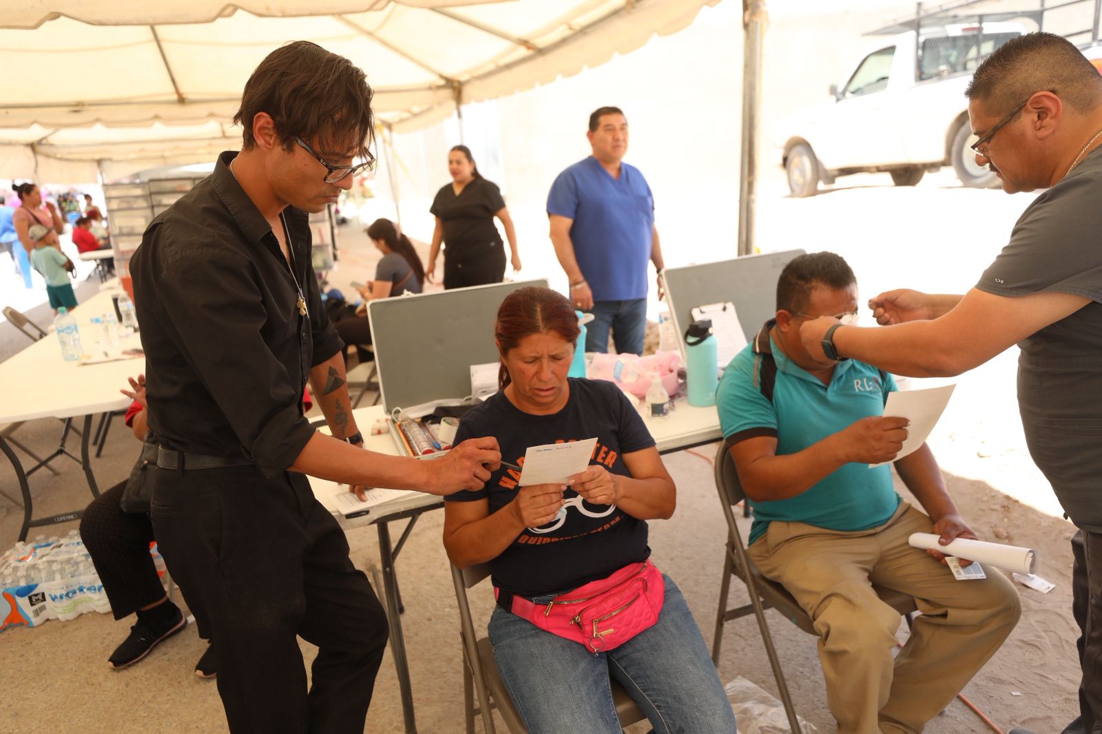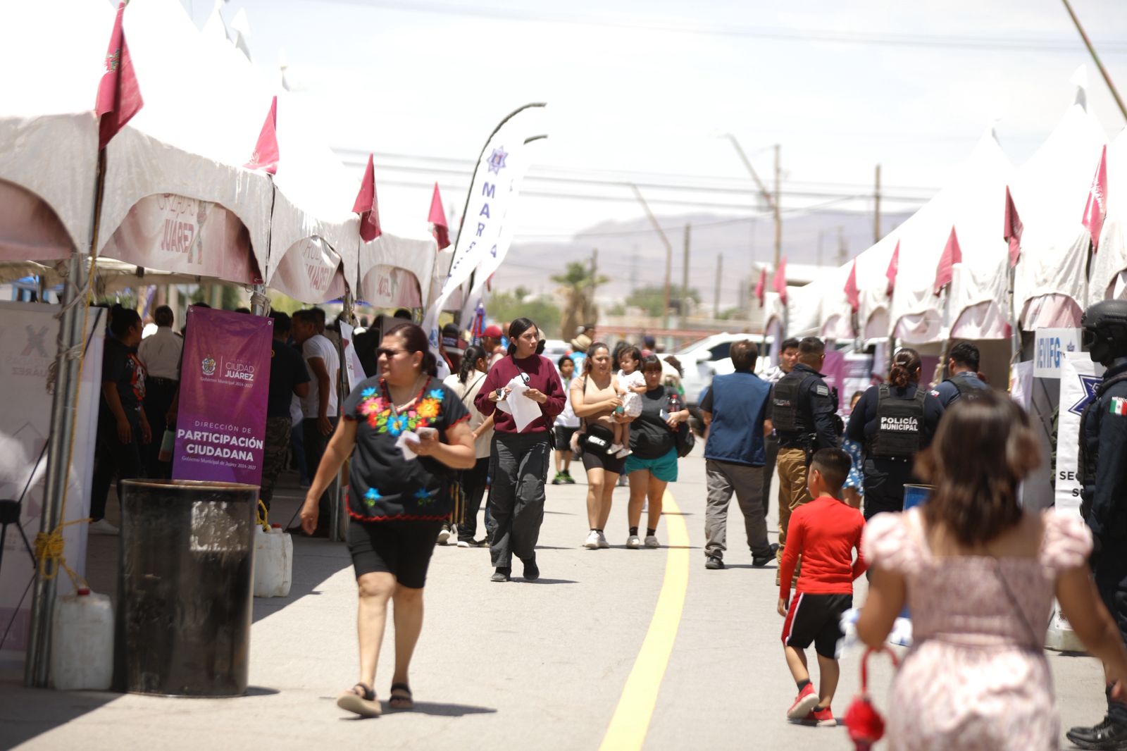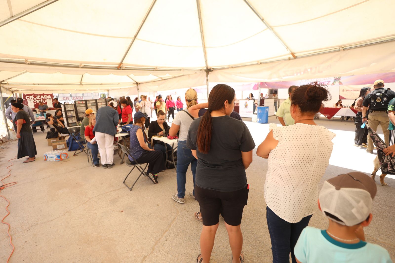 Habitantes de la colonia Horizontes del Sur y zonas aledañas se beneficiaron este sábado con los diversos servicios y apoyos que otorgaron el Gobierno Municipal y el Gobierno Federal en las "Cruzadas por Juárez, Atención a las Causas, Ciudad Juárez por la Paz".