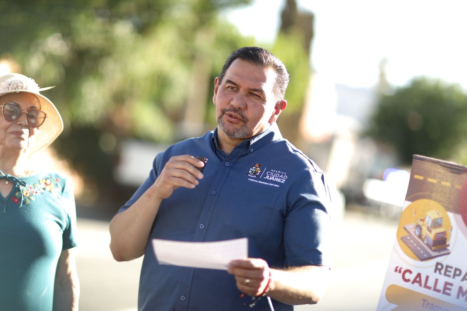 El Presidente Municipal, Cruz Pérez Cuéllar, entregó este día la pavimentación de la calle Mariano Varela, en el tramo de la 5 de Febrero a la Paso del Norte, ubicadas en la colonia Chaveña.