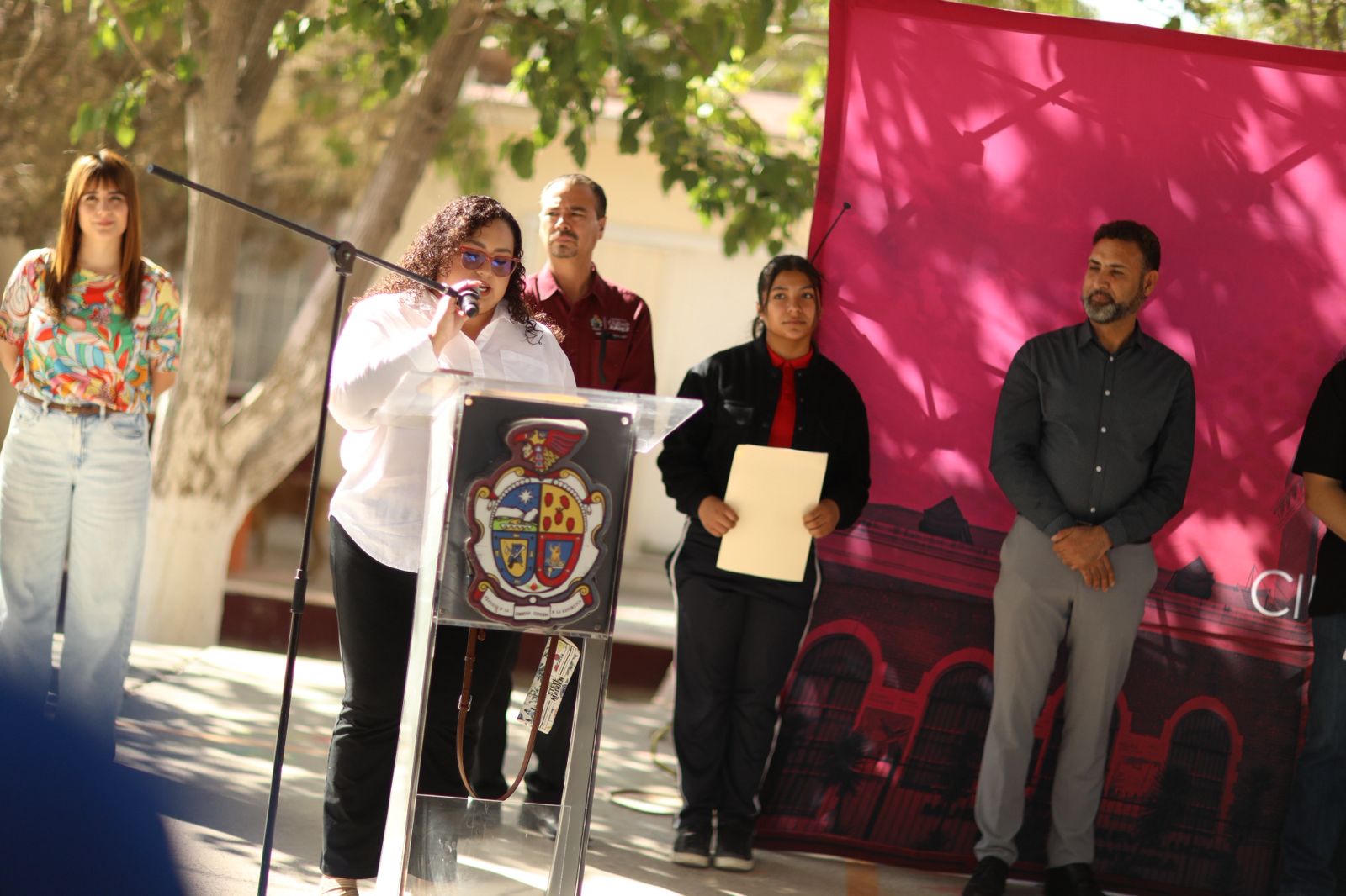 En la ceremonia de entrega estuvieron el coordinador de Infraestructura Educativa del Municipio, Ismael Rueda Fernández; el regidor Jorge Marcial Bueno Quiroz; la síndica Municipal, Ana Carmen Estrada y el Supervisor de la Zona 84, Jaime César García Ríos.