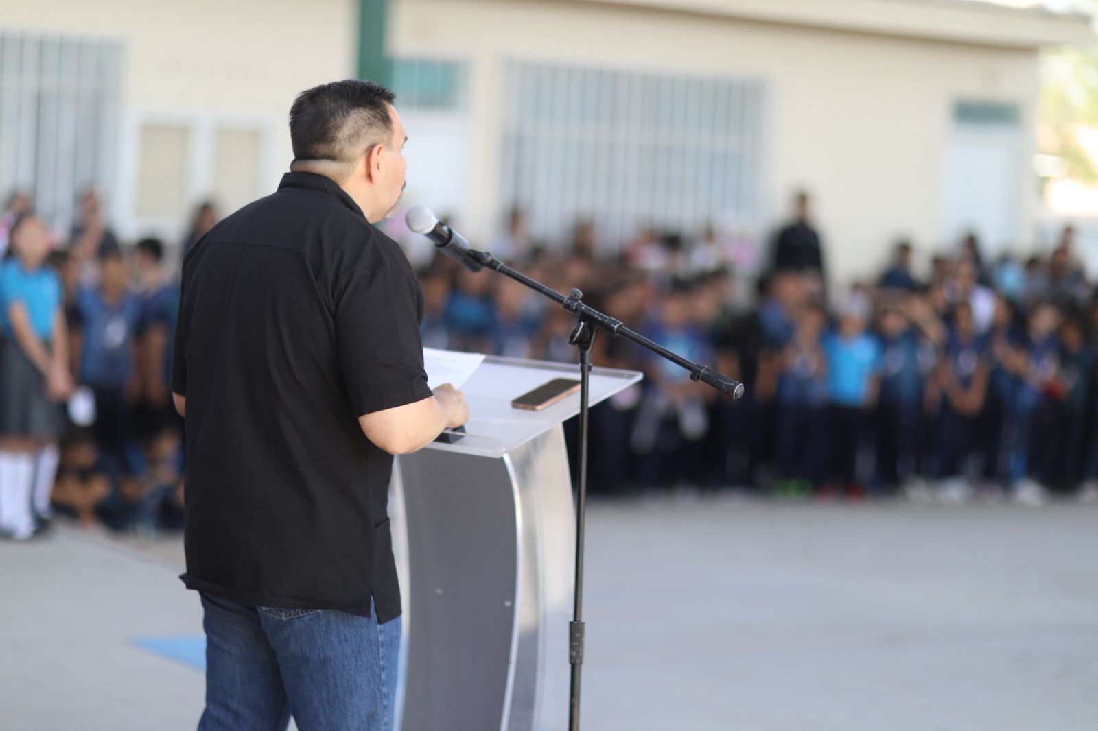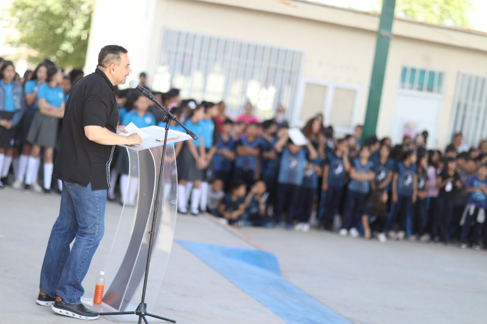 “Me da mucho gusto saludar a las y los estudiantes, maestros, maestras que hoy nos acompañan, así como a las madres y padres de familia, también le agradezco a la directora del plantel, Margarita Alfaro por su anfitrionía”, expresó.