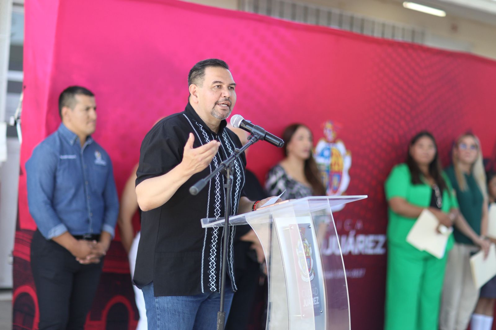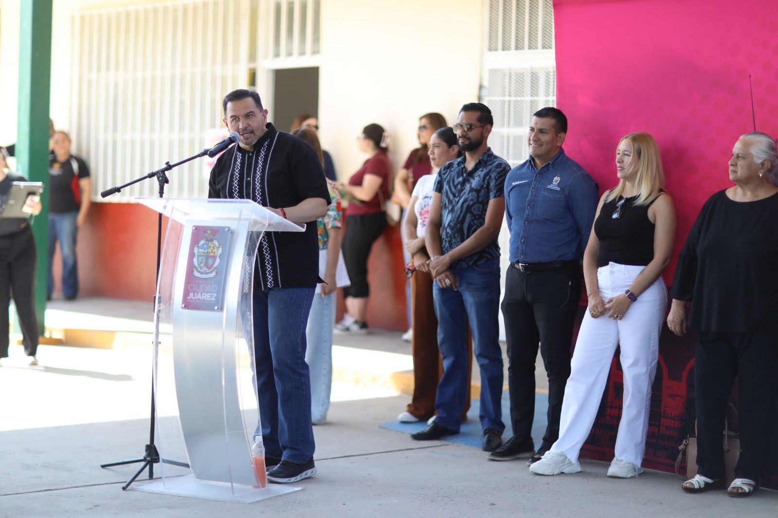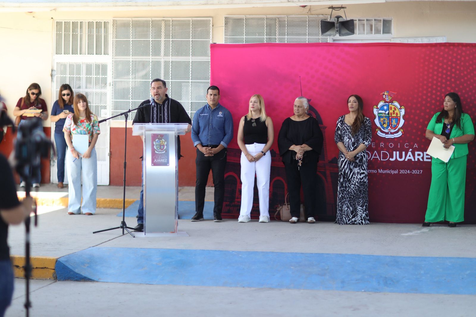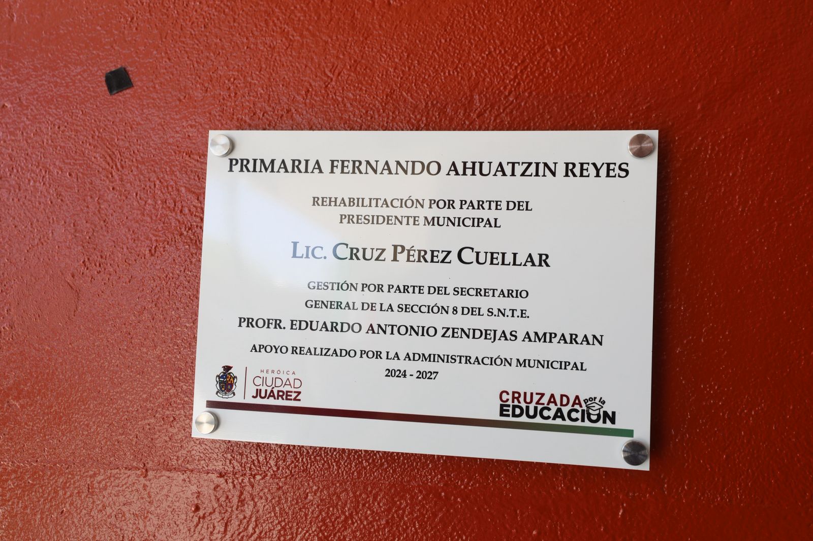 El Presidente Municipal, Cruz Pérez Cuéllar, entregó este día las mejoras que se hicieron en la Escuela Fernando Ahuatzin Reyes, ubicada en la Carretera Casas Grandes.