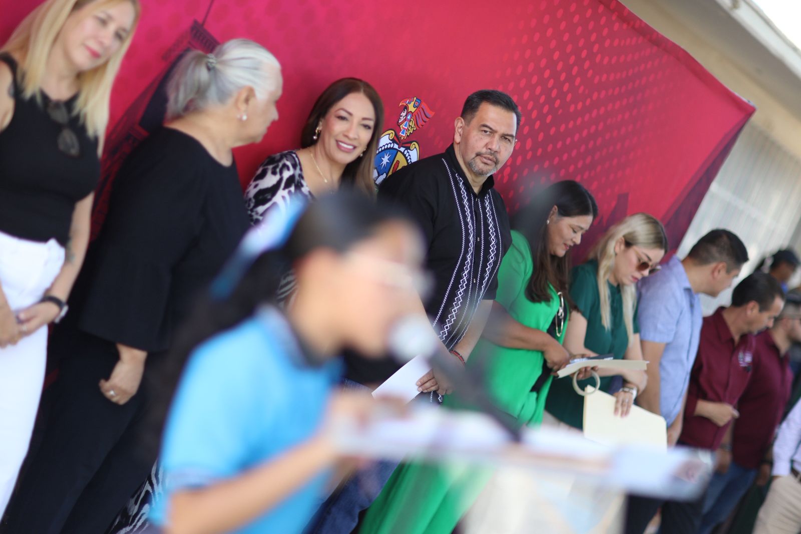 En el evento de entrega acudieron el coordinador de Infraestructura Educativa, Ismael Rueda Fernández; la supervisora de la Zona 65, Juana Zambrano; la supervisora del Sector 14, Perla María Ayala; los regidores Antonio Domínguez y Jorge Marcial Bueno Quiroz; la Síndica Municipal, Ana Carmen Estrada y en representación de los padres de familia, Viridiana Ramos.