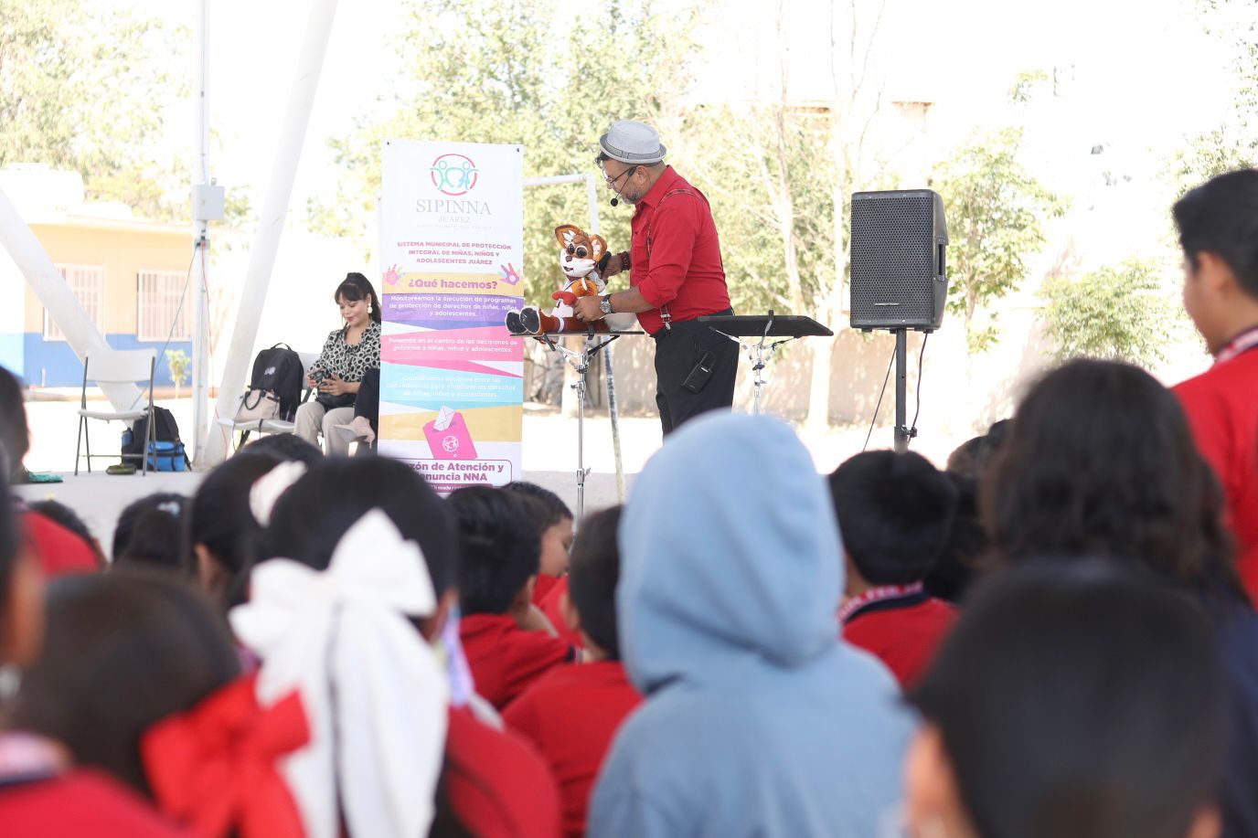 Como parte de las acciones para promover entornos escolares libres de violencia, personal del Sistema de Protección Integral de Niñas, Niños y Adolescentes (SIPINNA) acudió a la Escuela Primaria Fernando Jordán para impartir una plática sobre el bullying, utilizando como apoyo a Darfy, la mascota del organismo.