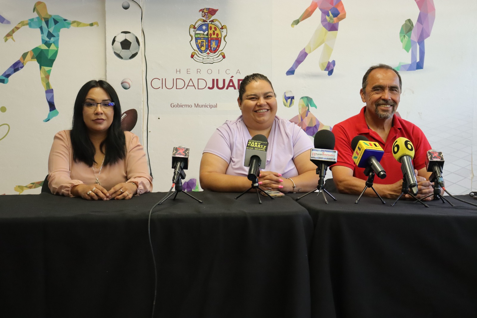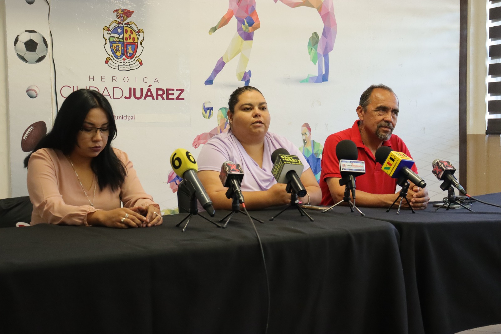 La conferencia de prensa se realizó en el Instituto Municipal de Deporte y Cultura Física, en la que estuvieron Saraí de los Santos, coordinadora de Desarrollo Deportivo del Instituto; David Serna, coordinador de Proyectos Deportivos y del Circuito Atlético Pedestre y Marisela Armendáriz, directora de Actívate Juárez.