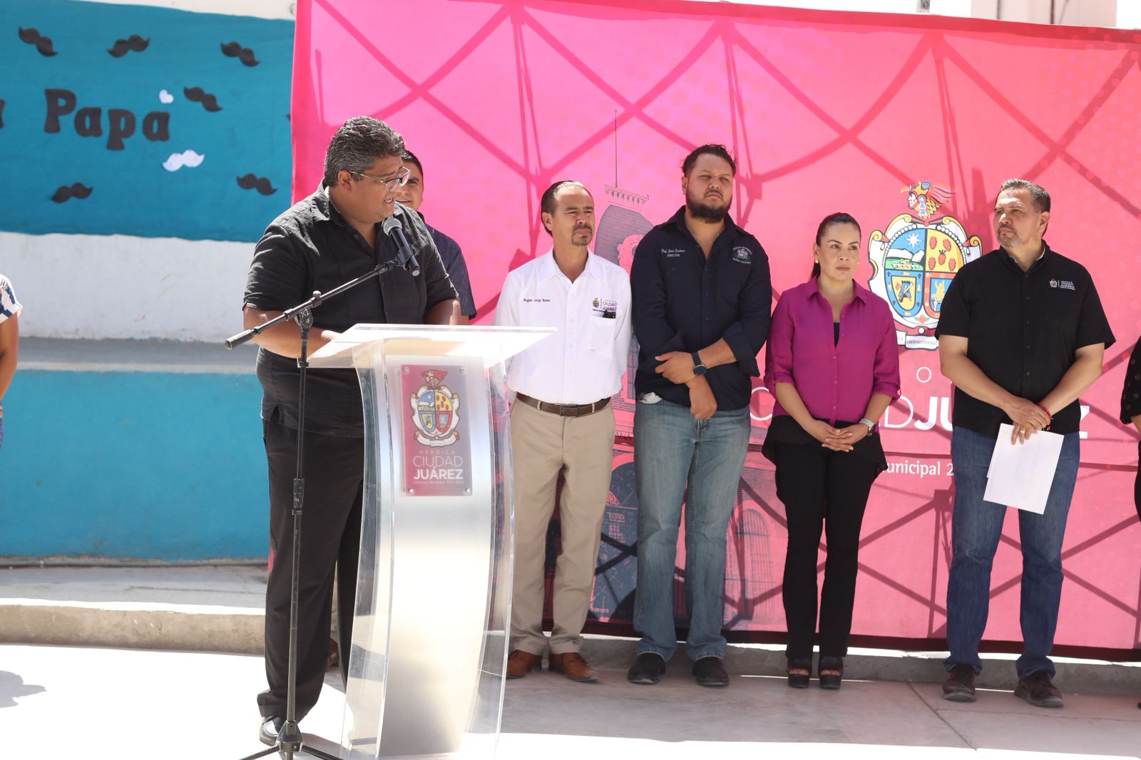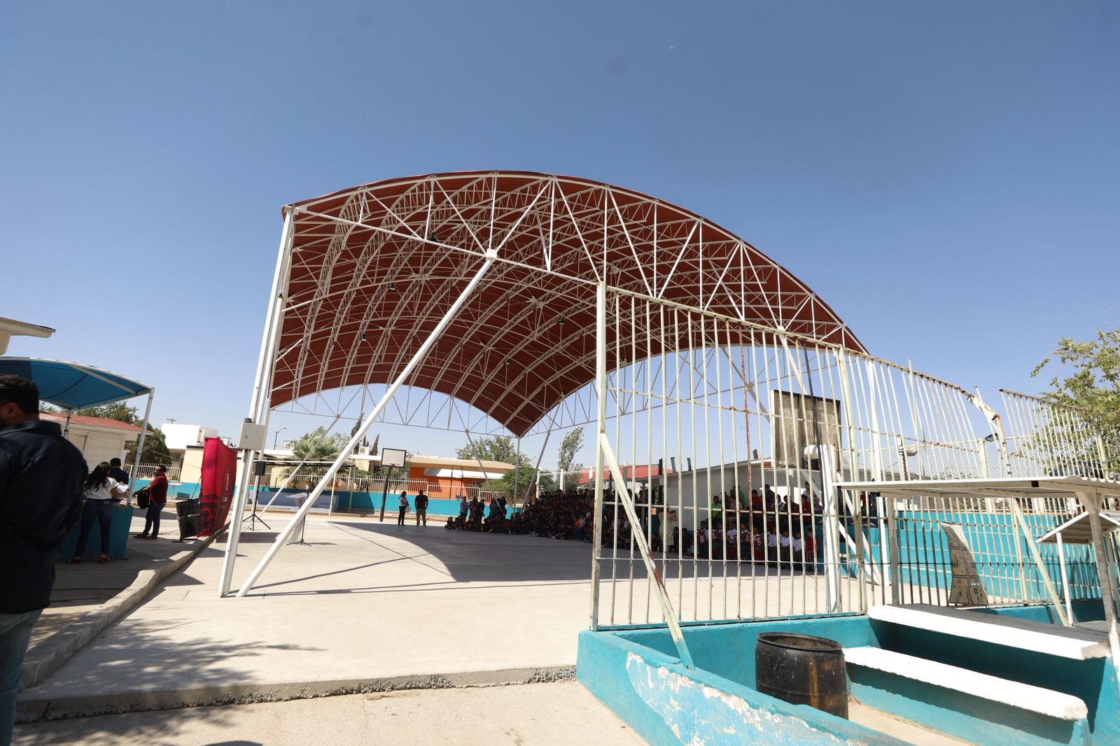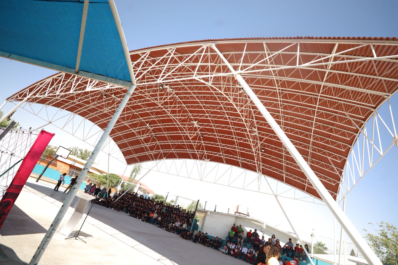 Como parte de la mejora en los planteles escolares, este día el Presidente Municipal, Cruz Pérez Cuéllar, entregó la construcción de un domo en la Escuela Primaria Oscar Chavira, ubicada en la colonia Héroes de México.