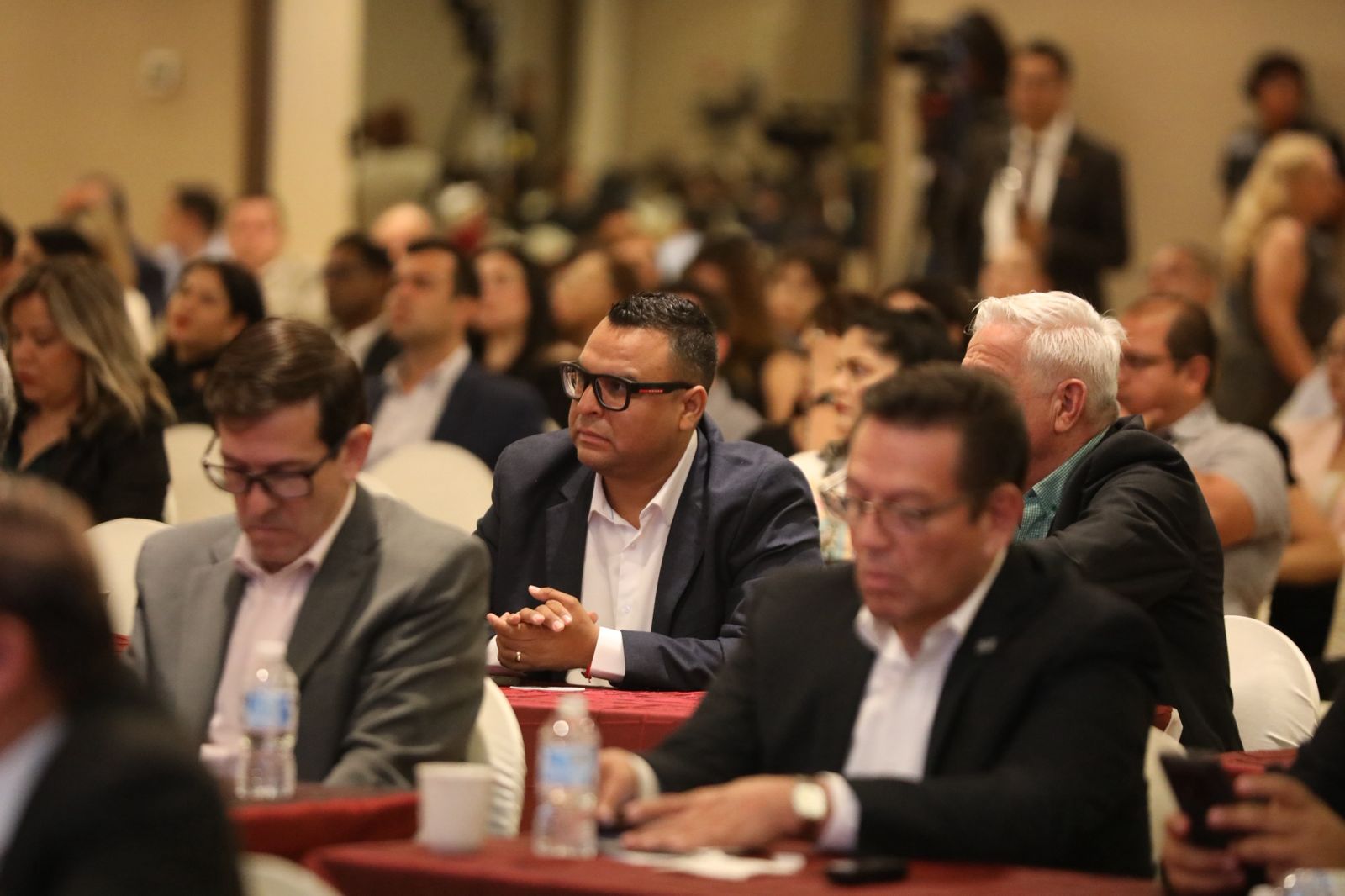 El evento se realiza en el Centro de Convenciones Cibeles, sitio al que se han dado cita empresarios, integrantes de cámaras del sector privado, así como público en general que realiza alguna actividad económica.