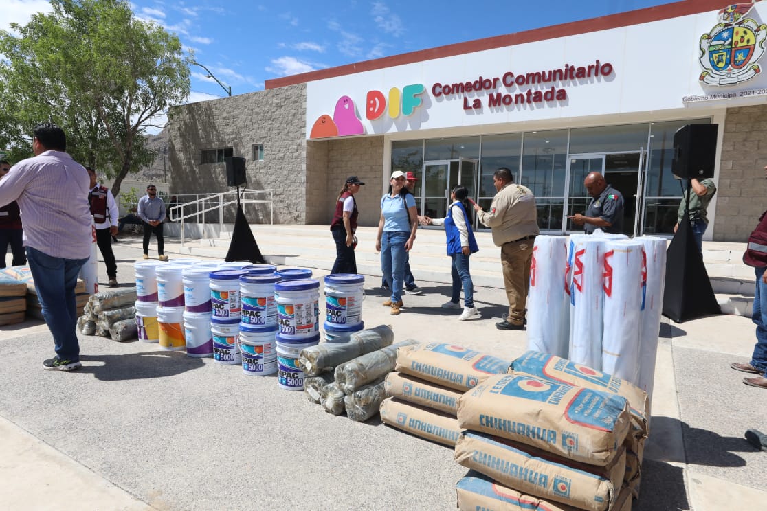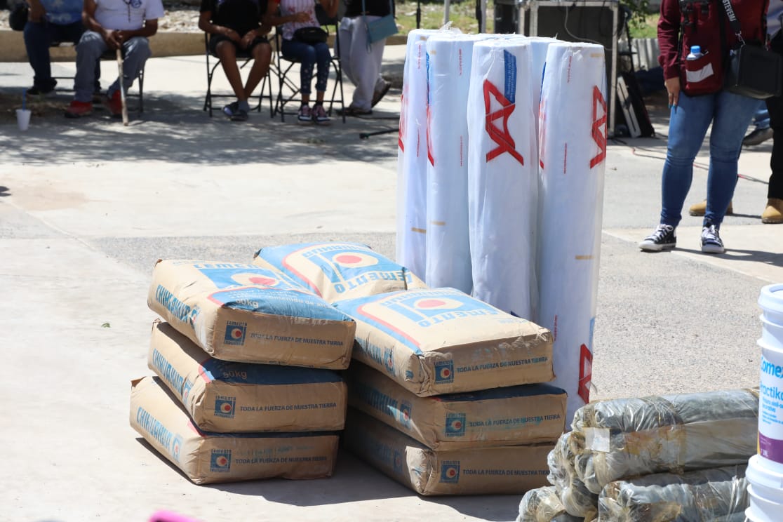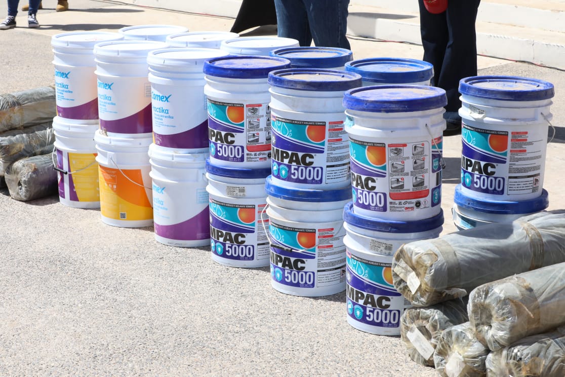"Hoy se hizo la entrega a las primeras 100 familias de un kit municipal que consiste en cemento, impermeabilizante, pintura y hule", explicó.