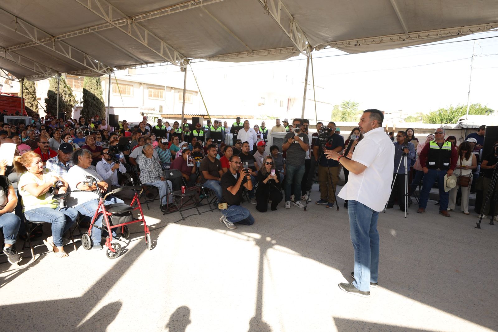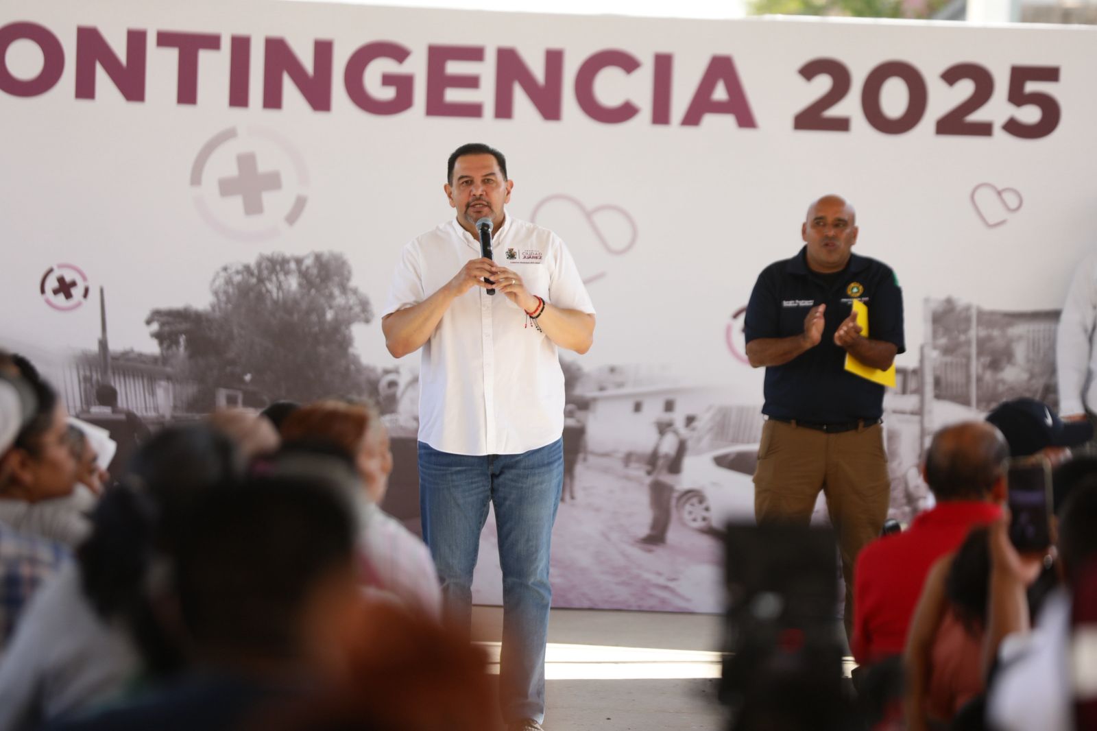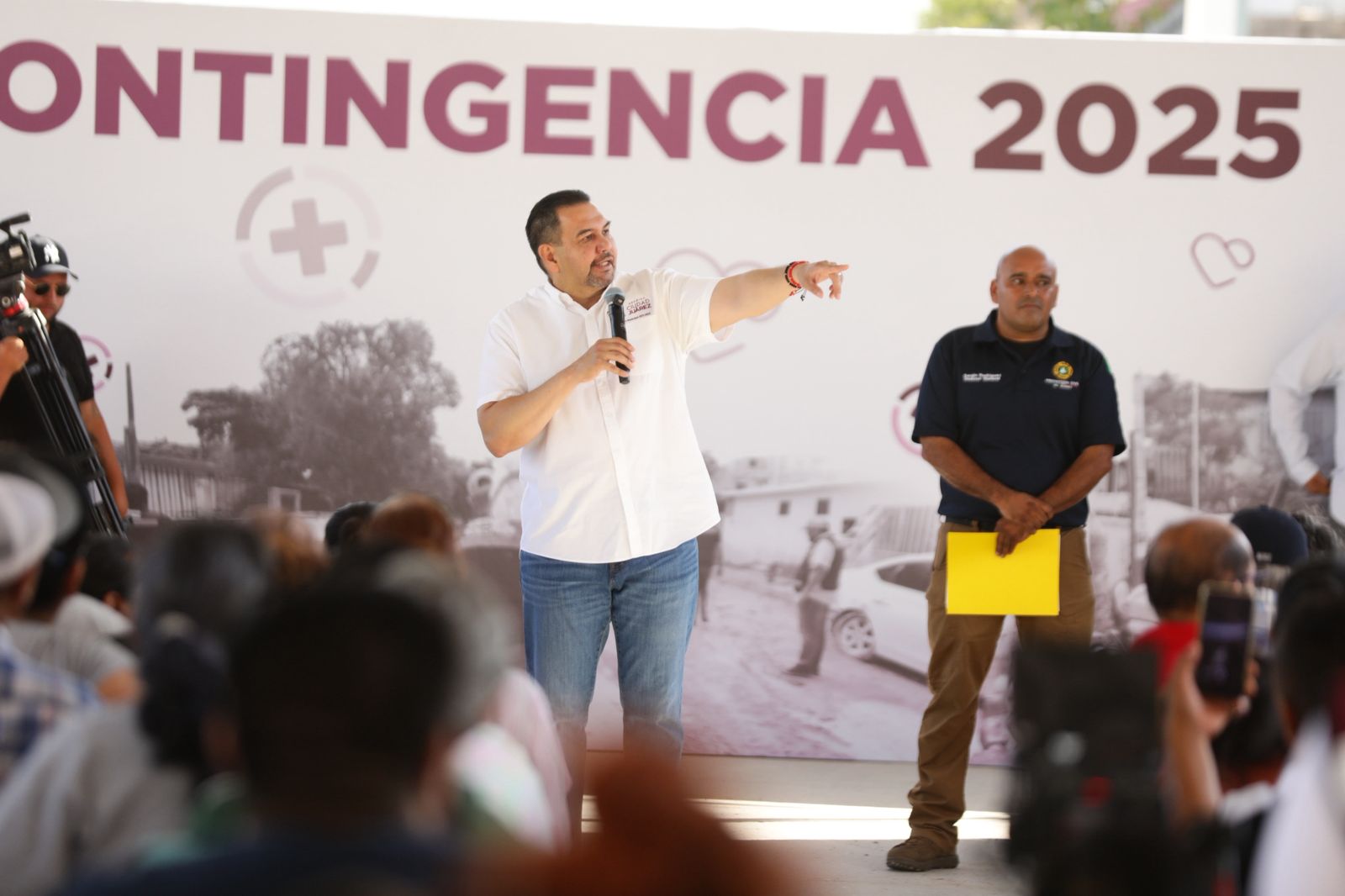 Previo a la entrega de material, el director general de Protección Civil, Sergio Rodríguez, presentó un resumen de todo el trabajo que se ha desarrollado en el poniente de la ciudad desde el 25 de junio a través de las diferentes dependencias municipales.