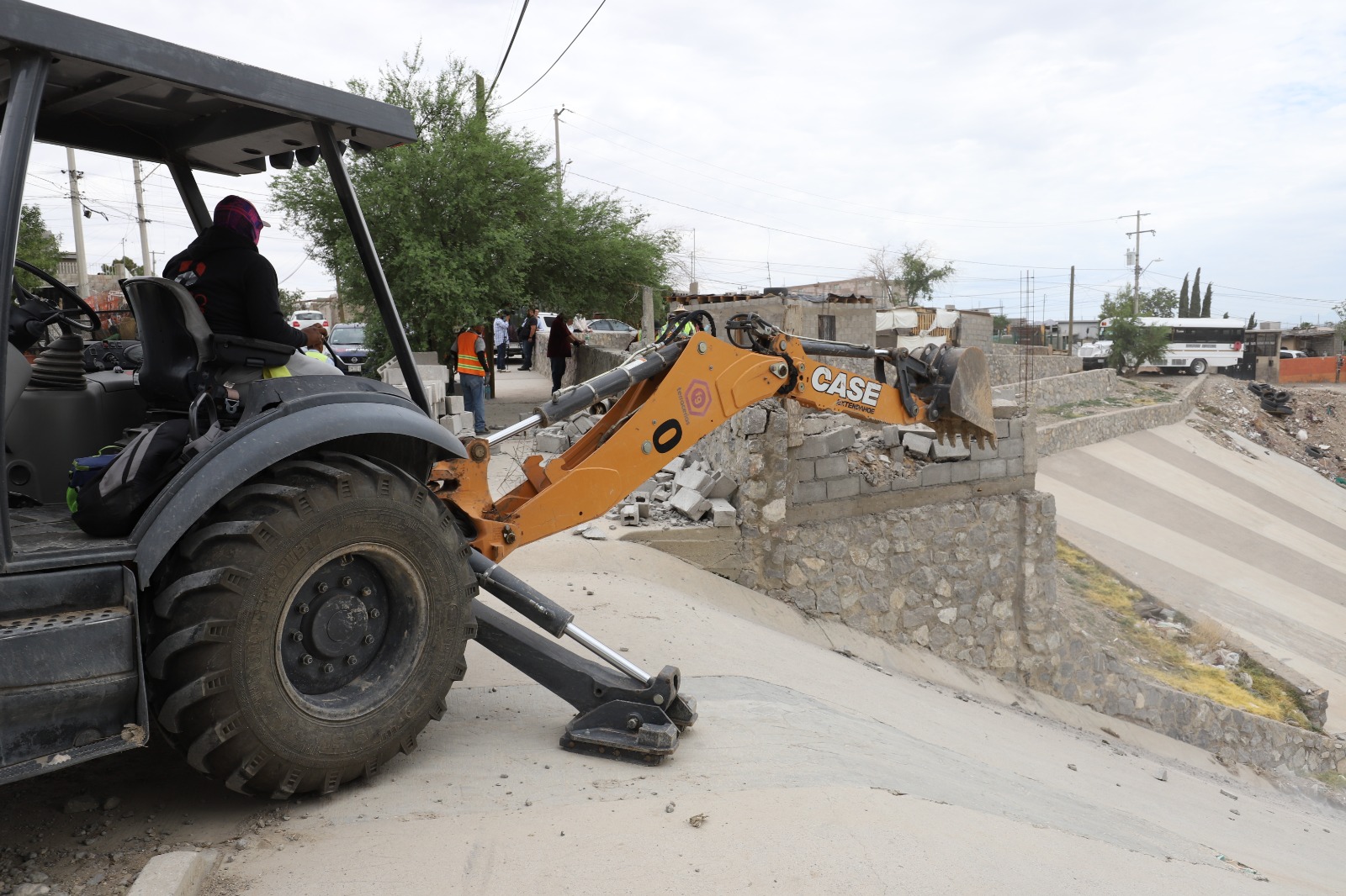 Como parte del programa permanente de Reordenamiento Urbano, distintas dependencias municipales participaron en un operativo coordinado en el que retiraron una construcción asentada en el muro de contención de un arroyo en la colonia Plutarco Elías Calles.