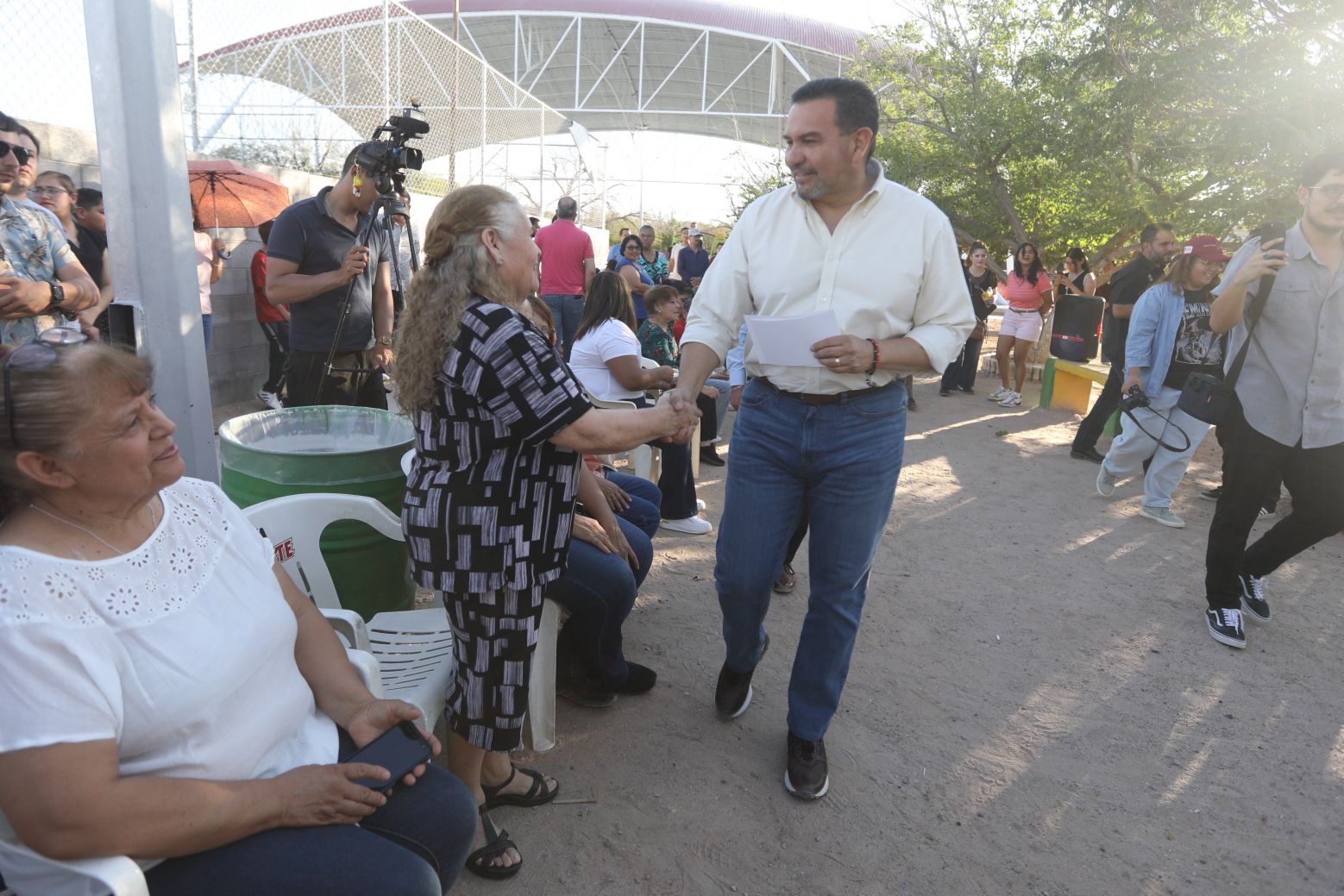El Presidente Municipal, Cruz Pérez Cuéllar, realizó la entrega de trabajos de rehabilitación a los usuarios del parque El Encanto, situado en la calle Año 1993 del Infonavit Salvárcar.