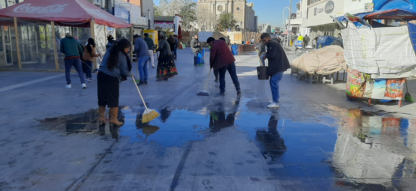 Participan comerciantes en la limpieza de la Zona Centro