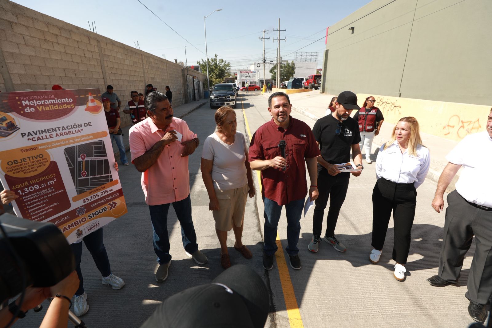 Esta mañana el Presidente Municipal, Cruz Pérez Cuéllar, realizó la entrega oficial de los trabajos hechos en la calle Argelia Manriquez, dentro del programa de Mejoramiento de Vialidades, cuyo objetivo es concentrar todos los esfuerzos para lograr cambios en poco tiempo.
