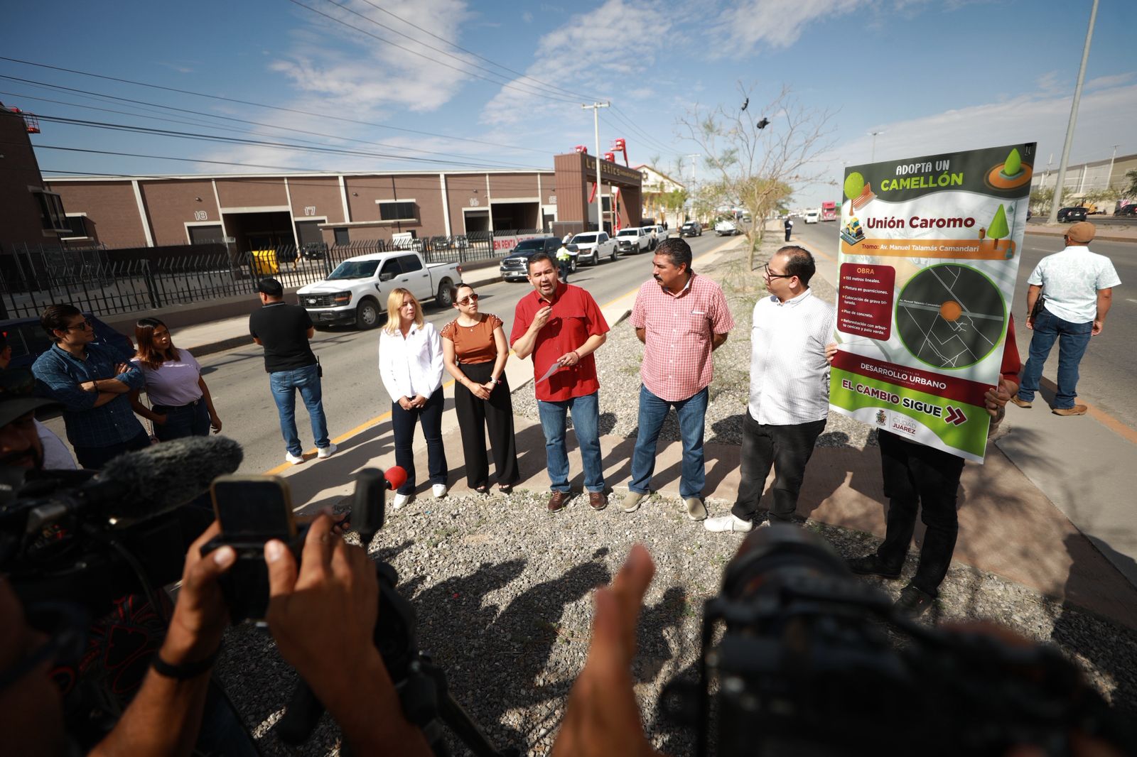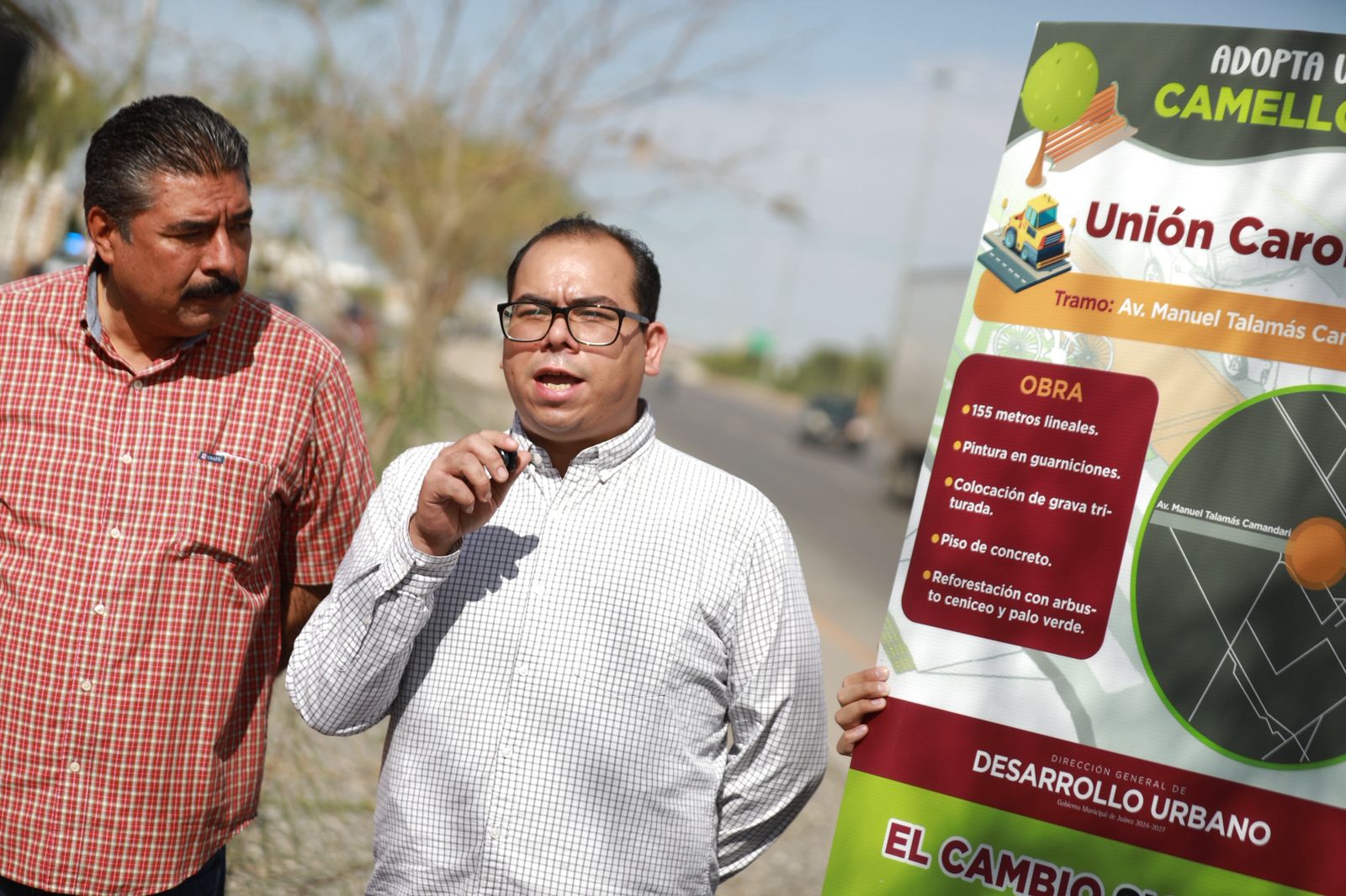 El Presidente Municipal, Cruz Pérez Cuéllar, encabezó la entrega de las obras de rehabilitación de un tramo del camellón central en la avenida Manuel Talamás Camandari, como parte del programa Adopta un Camellón de la Dirección General de Desarrollo Urbano.