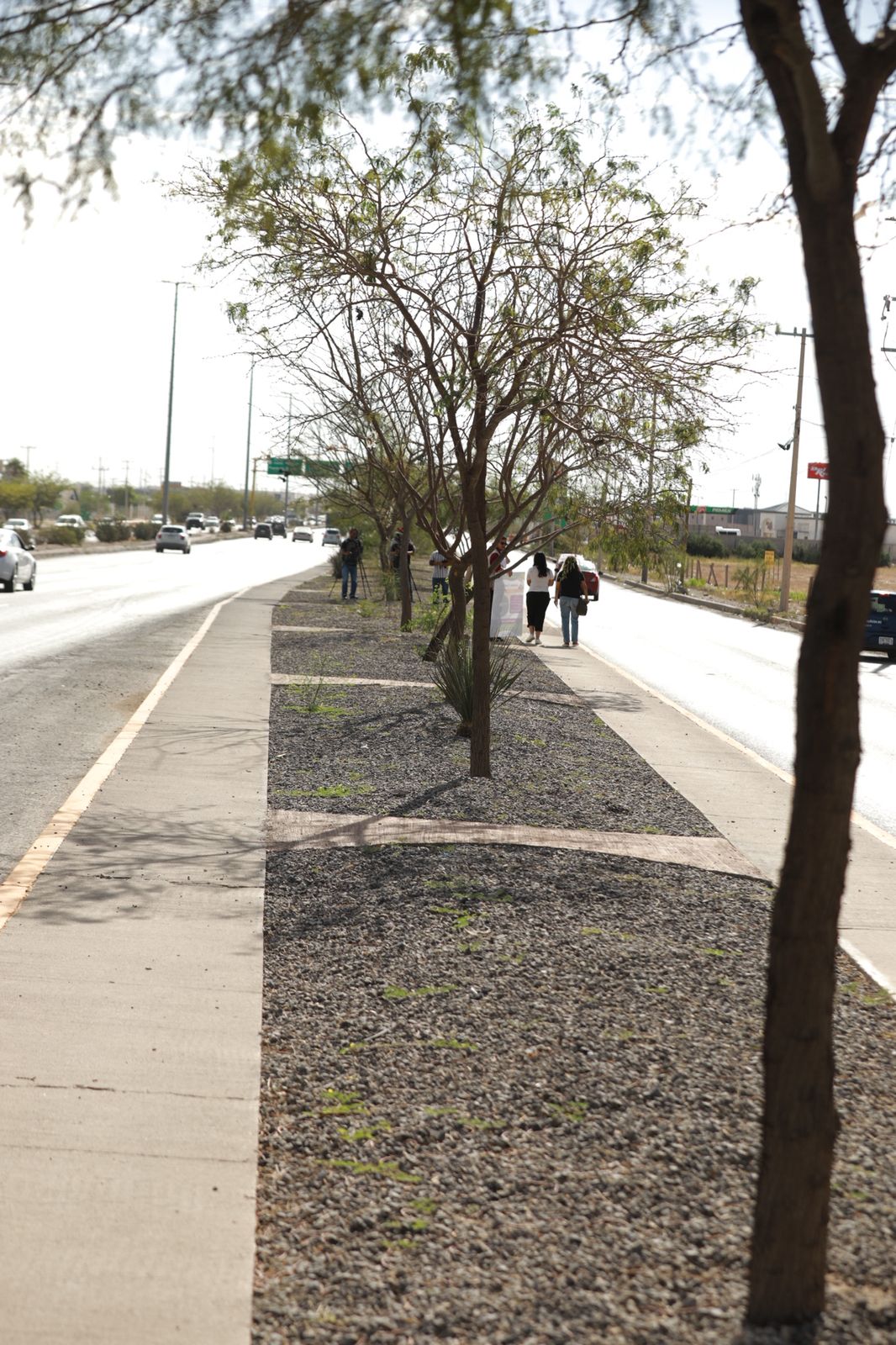 En representación de la directora general de Desarrollo Urbano, Claudia Morales Medina, acudió el coordinador técnico Gustavo Villalpando, quien informó que la obra consistió en la atención de 155 metros lineales con pintura en guarniciones, colocación de grava triturada, instalación de piso de concreto y reforestación con arbusto cenizo y palo verde.