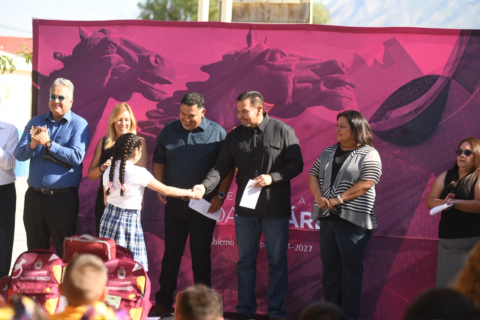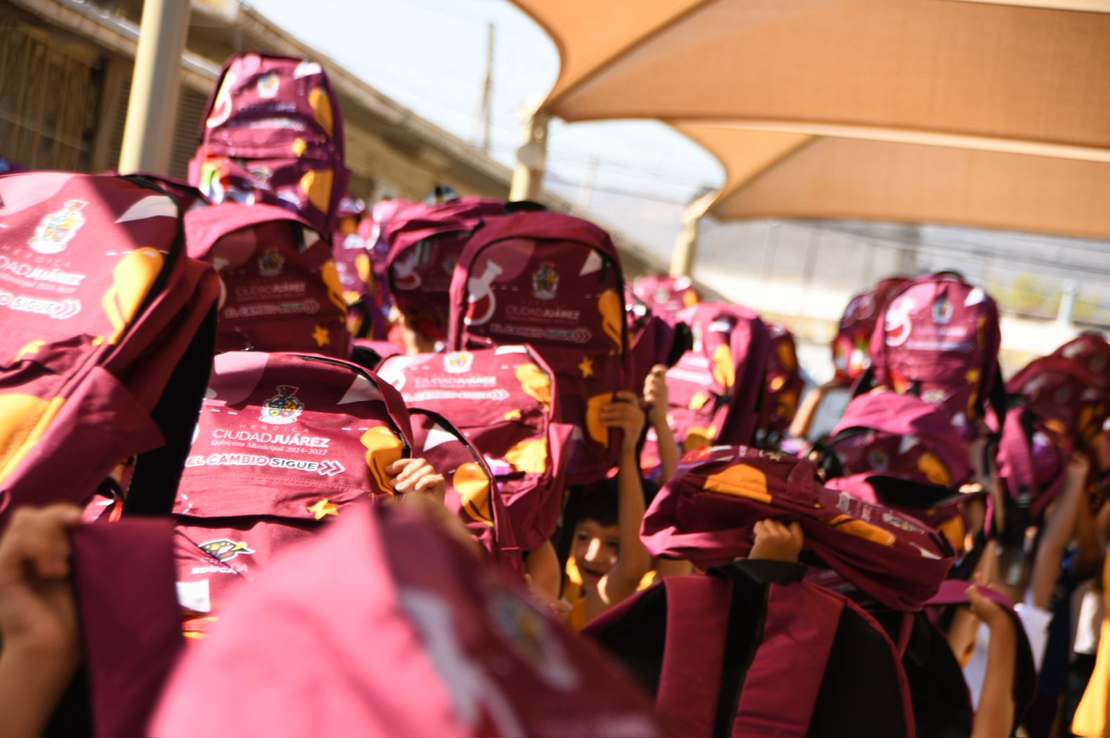 Como parte del acto protocolario, se hizo la entrega simbólica de mochilas a estudiantes de distintos grados, quienes mostraron con orgullo sus nuevos materiales escolares. Padres, maestros y autoridades aplaudieron este esfuerzo, subrayando que fortalece el compromiso del Gobierno Municipal con la educación y el bienestar de la niñez juarense.