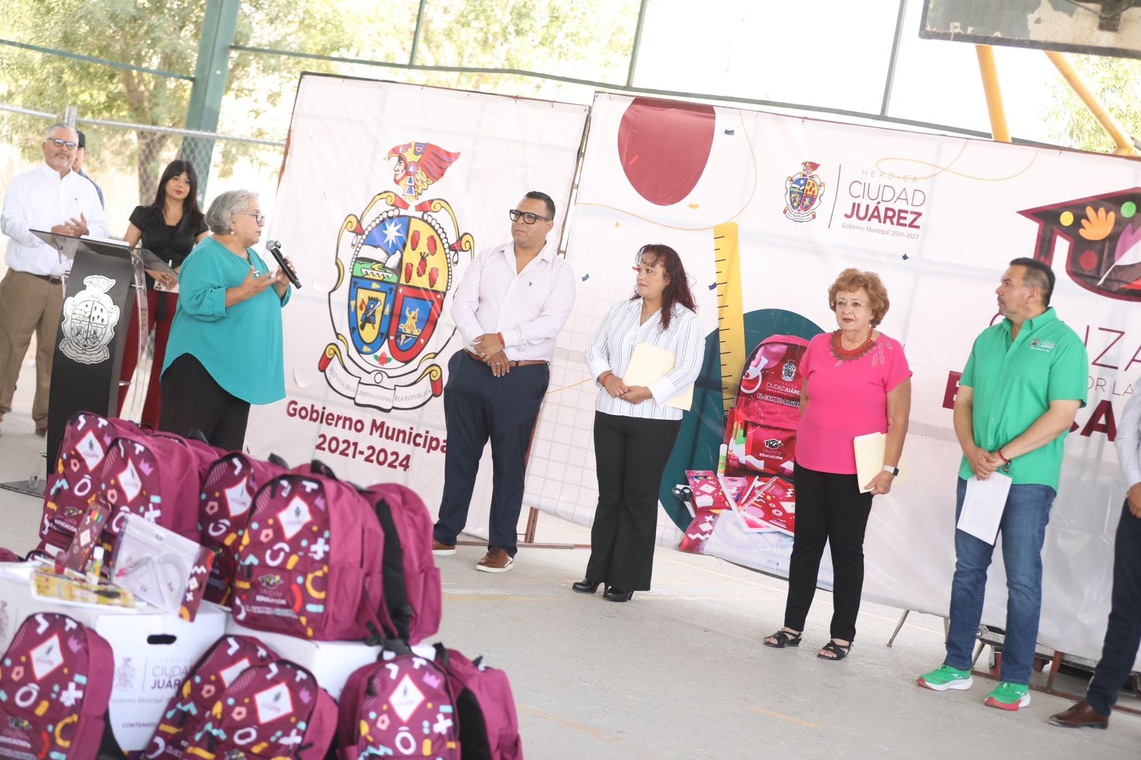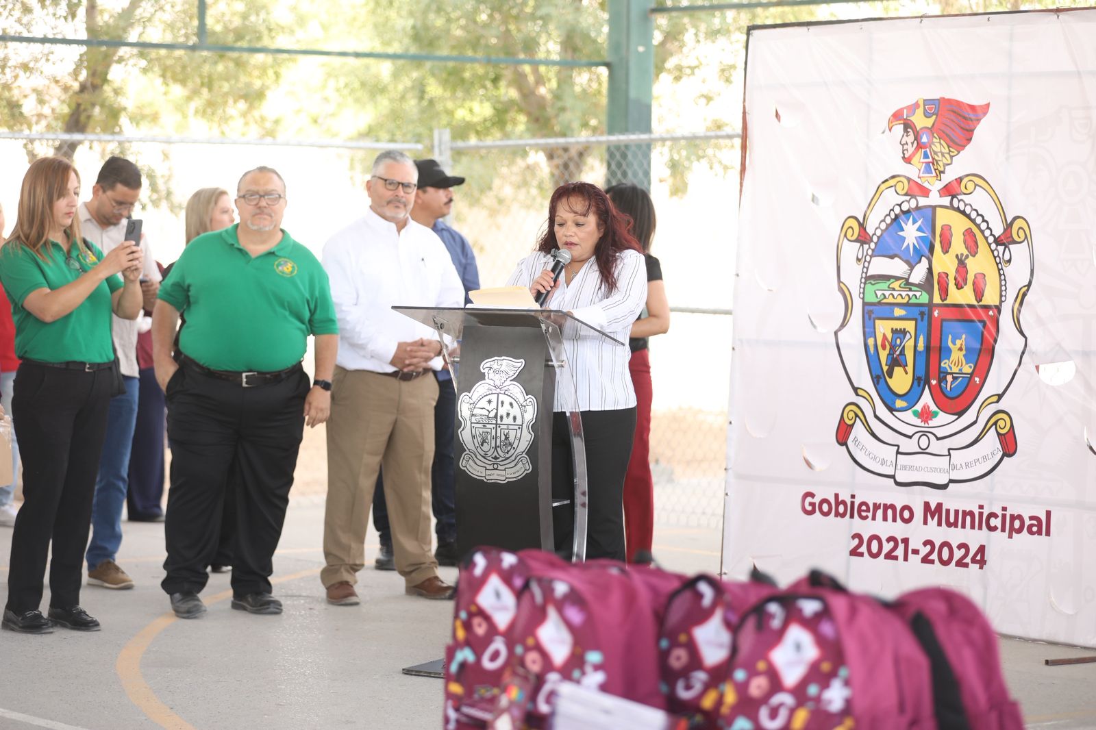 En el evento también participaron la supervisora de la zona 4, Carlota Lucero; el coordinador general de la Sección 8 del Sindicato Nacional de Trabajadores de la Educación, Pedro Hidalgo; Sassil Lozano, secretaria de Organización de la Sección 8 del SNTE; Ismael Rueda, titular de Infraestructura Educativa; y Guillermo Enrique Alvídrez Olivas, director de Educación del Municipio.