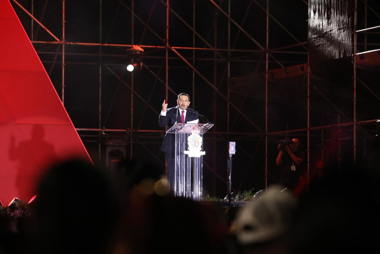 Durante su mensaje, destacó ante 25 mil asistentes que este informe habla del esfuerzo conjunto de los ciudadanos y del Gobierno Municipal, con la convicción de que los cambios en Juárez se construyen desde las calles y con la participación de todos los sectores sociales.