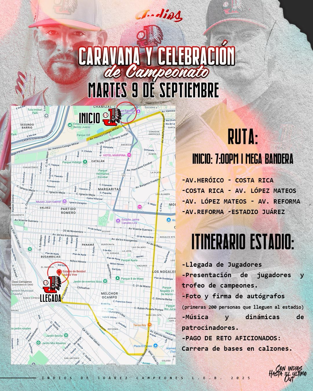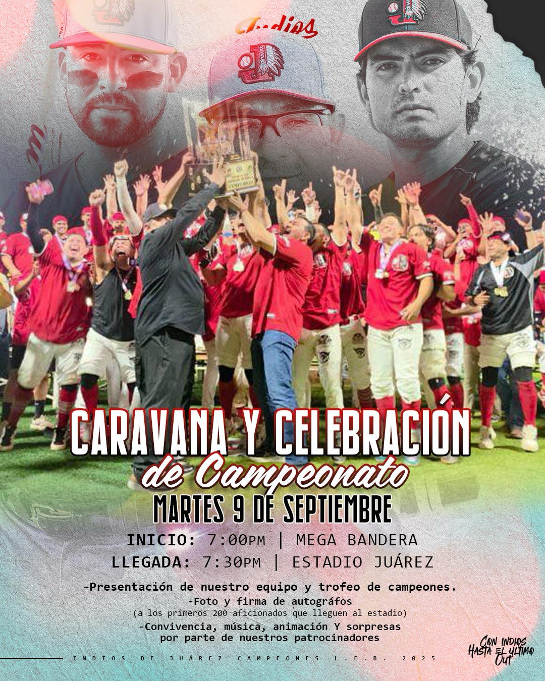 El Gobierno Municipal y el equipo de beisbol Indios de Juárez invita a la comunidad a unirse mañana a la Caravana y Celebración de Campeonato.