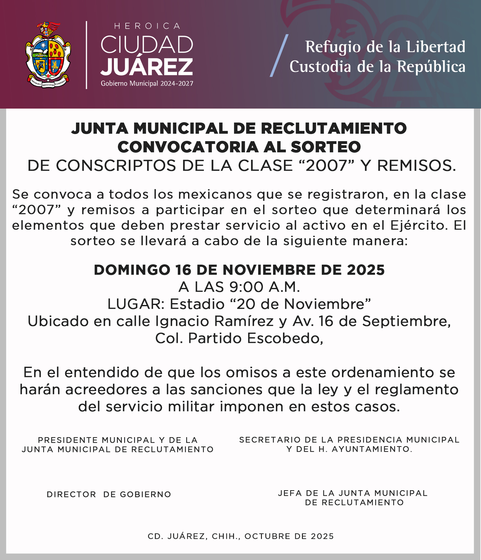 La titular de la dependencia, Viridiana Gómez, dijo que se convoca a todos los mexicanos que se registraron en la clase 2007 y remisos a participar en el sorteo que determinará los elementos que deben prestar el servicio activo en el Ejército Mexicano.