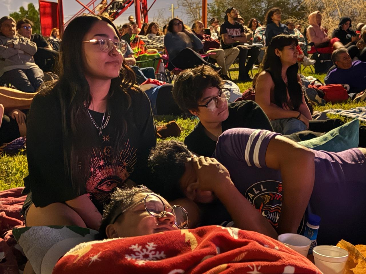 Con cobijas, sillas y botanas en mano, las familias y grupos de amigos transformaron el jardín del museo en una sala de cine al aire libre, demostrando el creciente interés del público por estas actividades culturales.