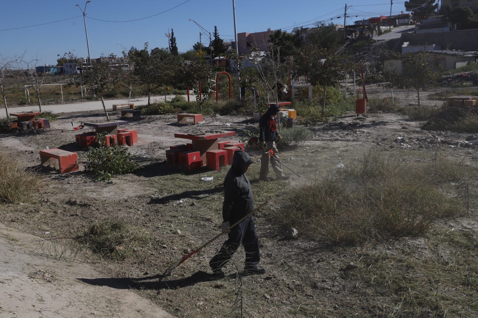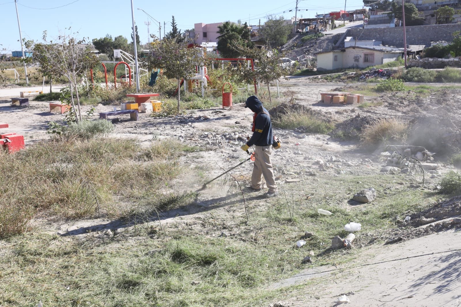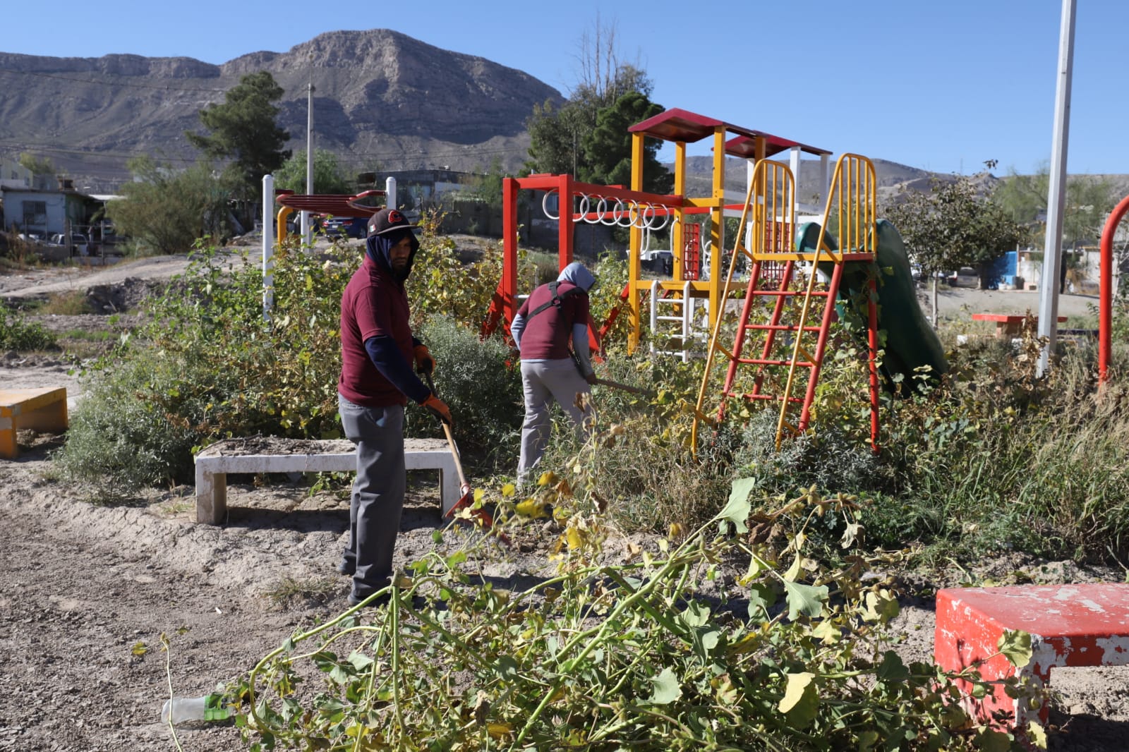 Con el objetivo de mantener en buen estado los espacios públicos y brindar áreas seguras y agradables para las familias juarenses, personal de la Dirección de Parques y Jardines realizó labores de limpieza y mantenimiento en el parque Santa Lucía, ubicado en la colonia Plutarco Elías Calles.