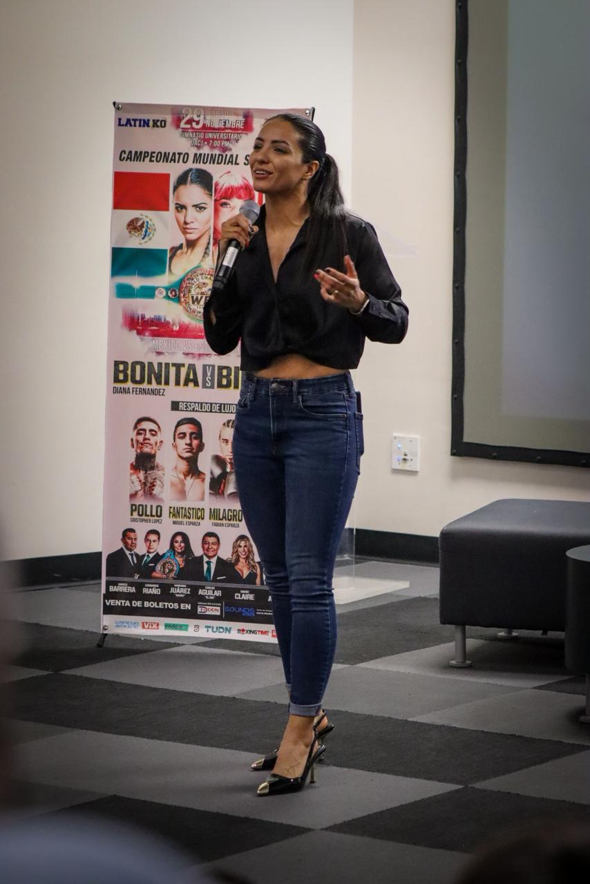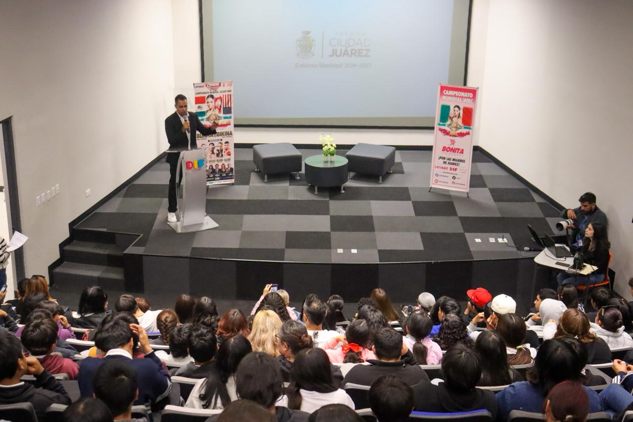 En el marco de la campaña organizada por el DIF Municipal ¡Por las Mujeres de Juárez! la boxeadora internacional Diana “Bonita” Fernández, impartió una conferencia motivacional.