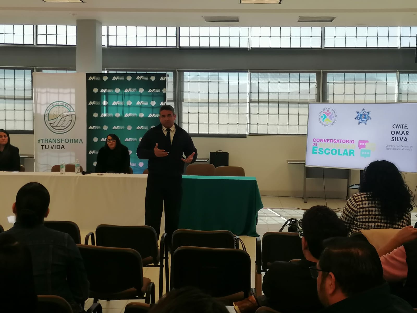 La Coordinación General de Seguridad Vial participó en el Conversatorio de Seguridad Escolar organizado por la Mesa de Prevención en Adicciones y Violencia, realizado en las instalaciones de la Universidad Tecnológica Paso del Norte.