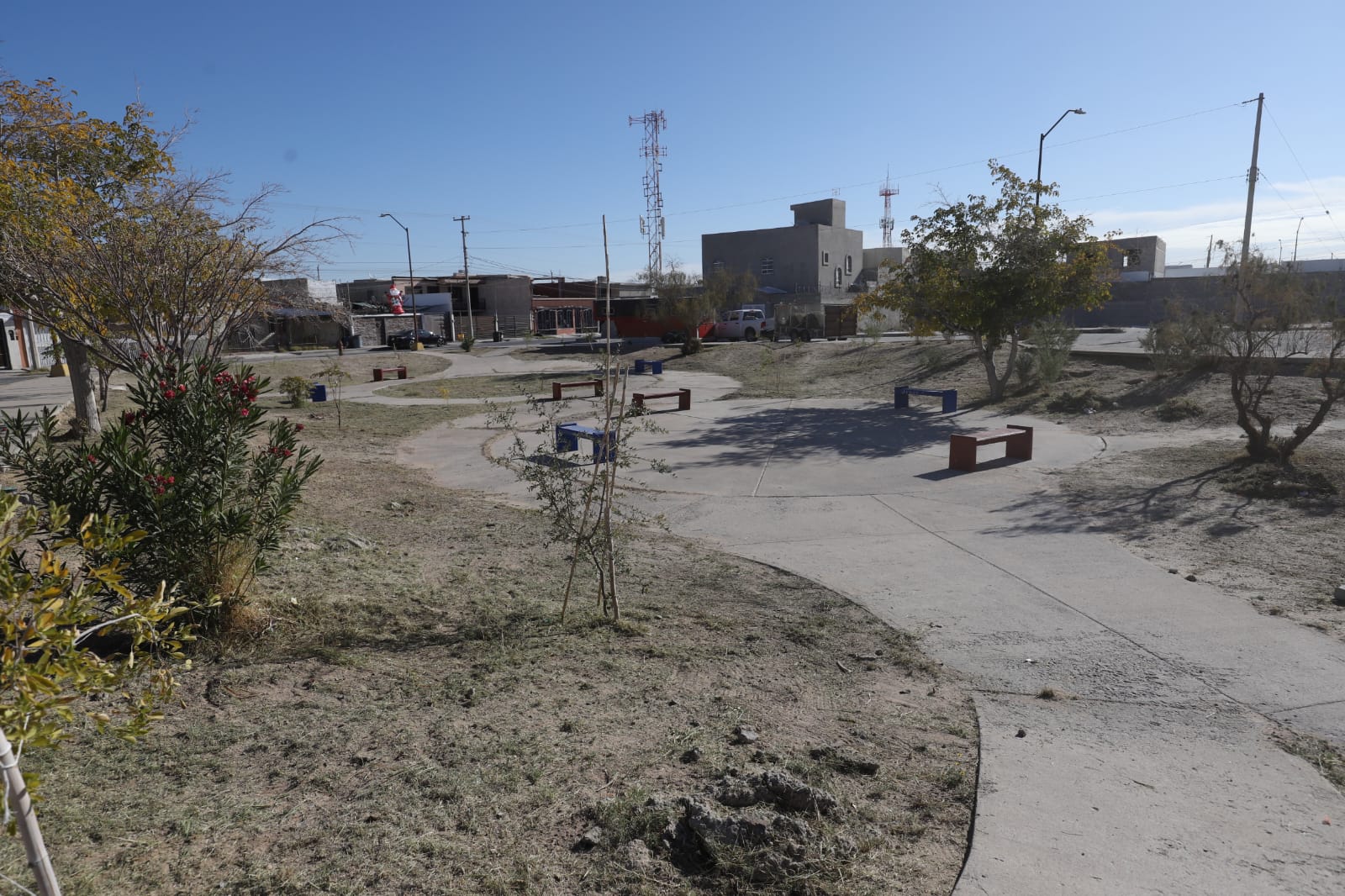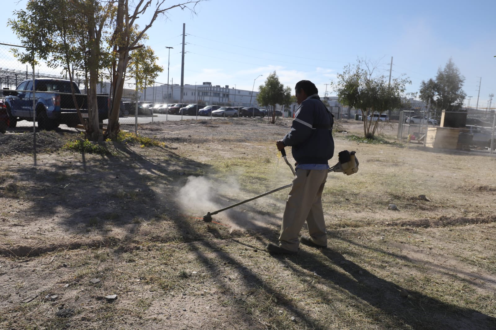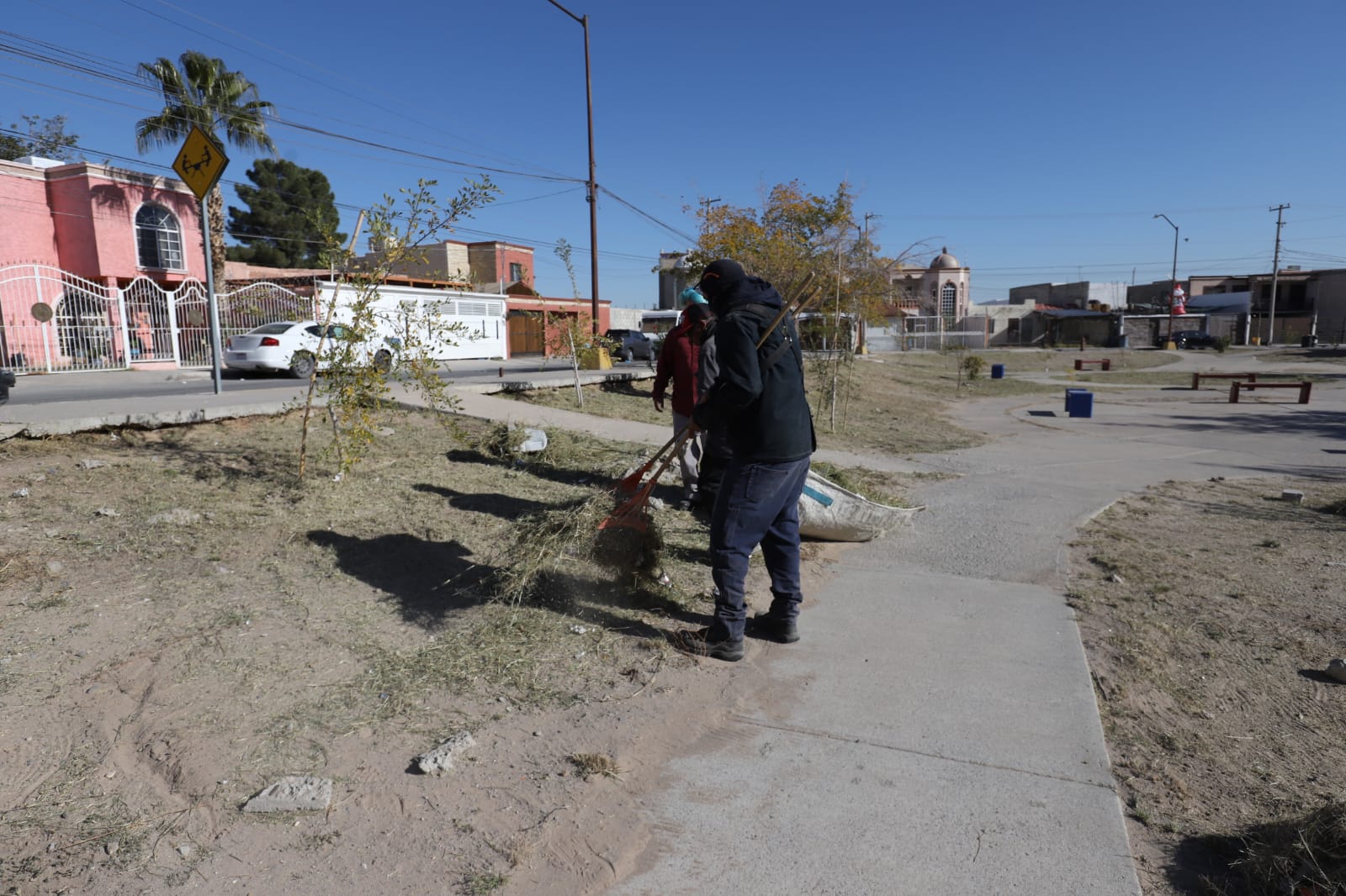 Con el propósito de mantener en buen estado los espacios públicos de la ciudad, la Dirección de Parques y Jardines llevó a cabo labores de mantenimiento en el parque lineal del fraccionamiento Terrazas del Valle, en la zona sur de Juárez.