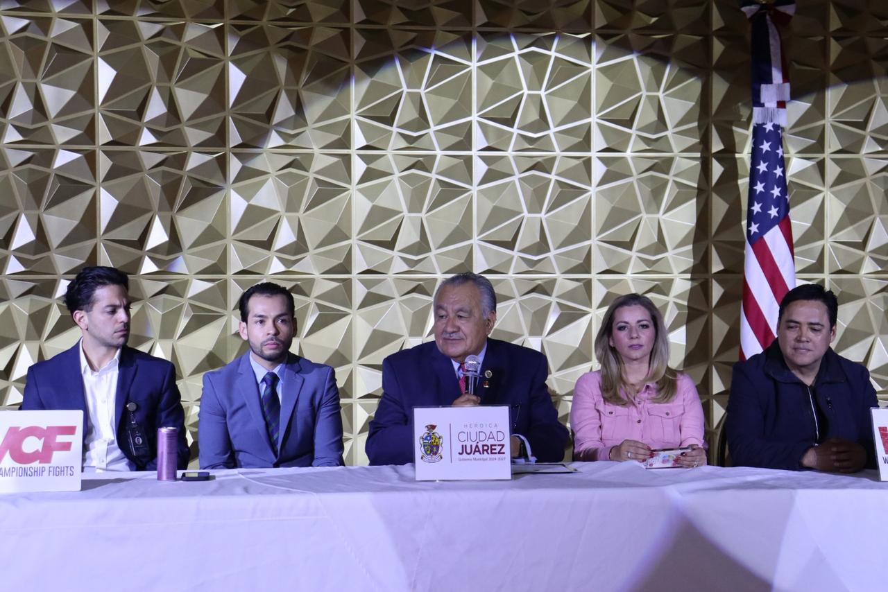 En la conferencia estuvieron el Dr. Lorenzo Soberanes, presidente de la Comisión de Box de Ciudad Juárez; Lic. Luis Minjares, abogado migratorio; Víctor Zavalza, director general de WCF Promotions, Uziel "Muñeco" Bellman, Alan "Superman" Ávila y los principales boxeadores de esta función sabatina.