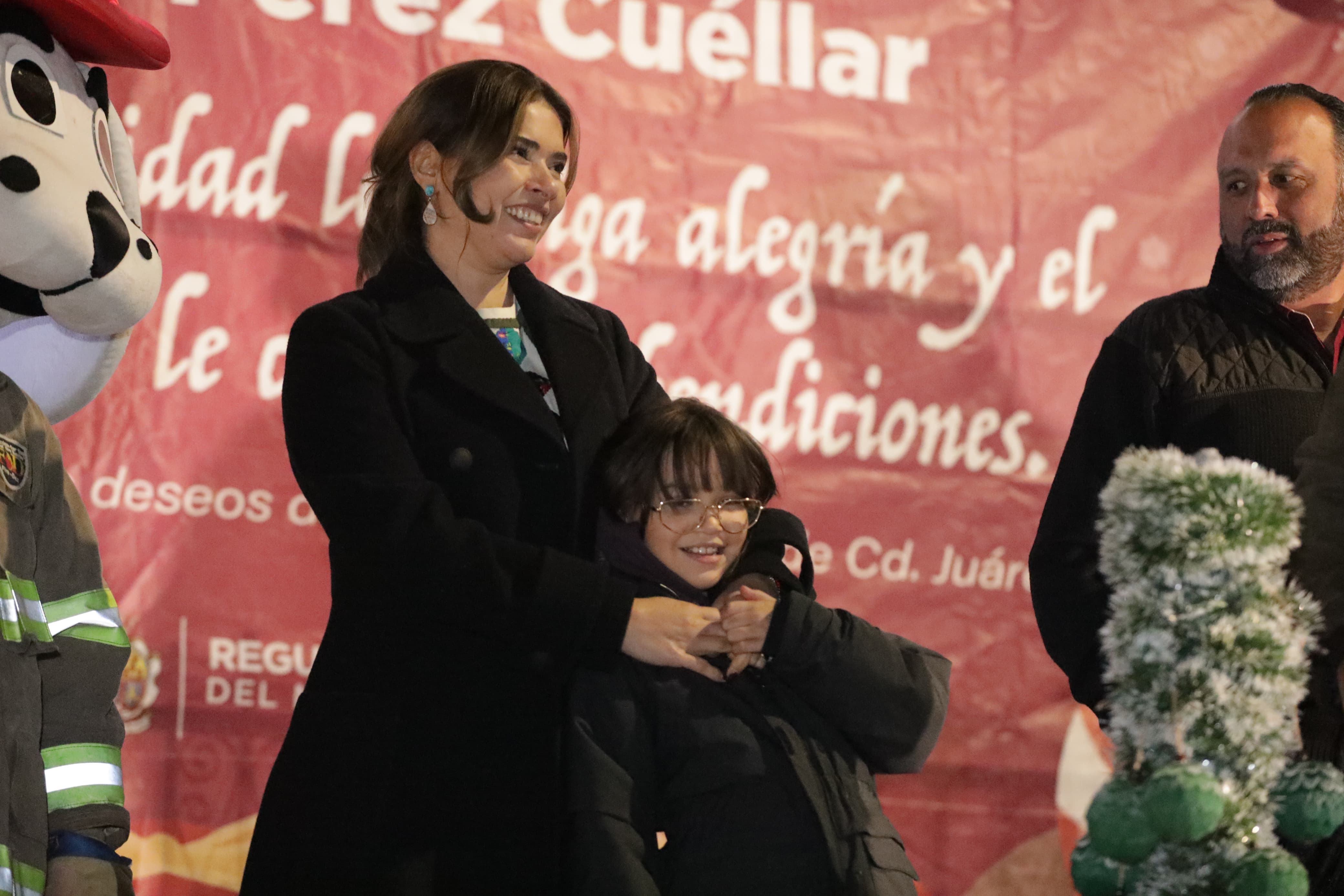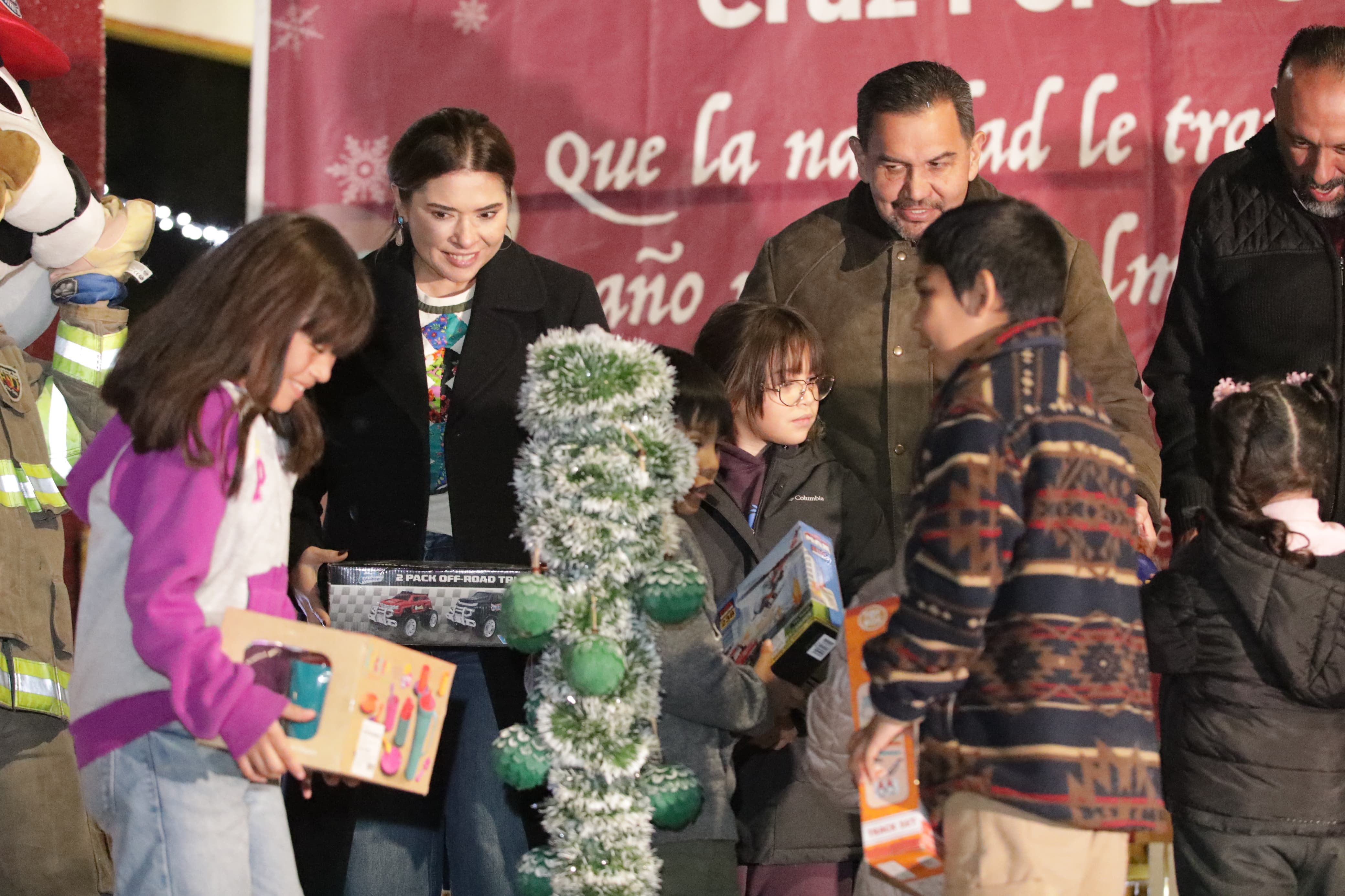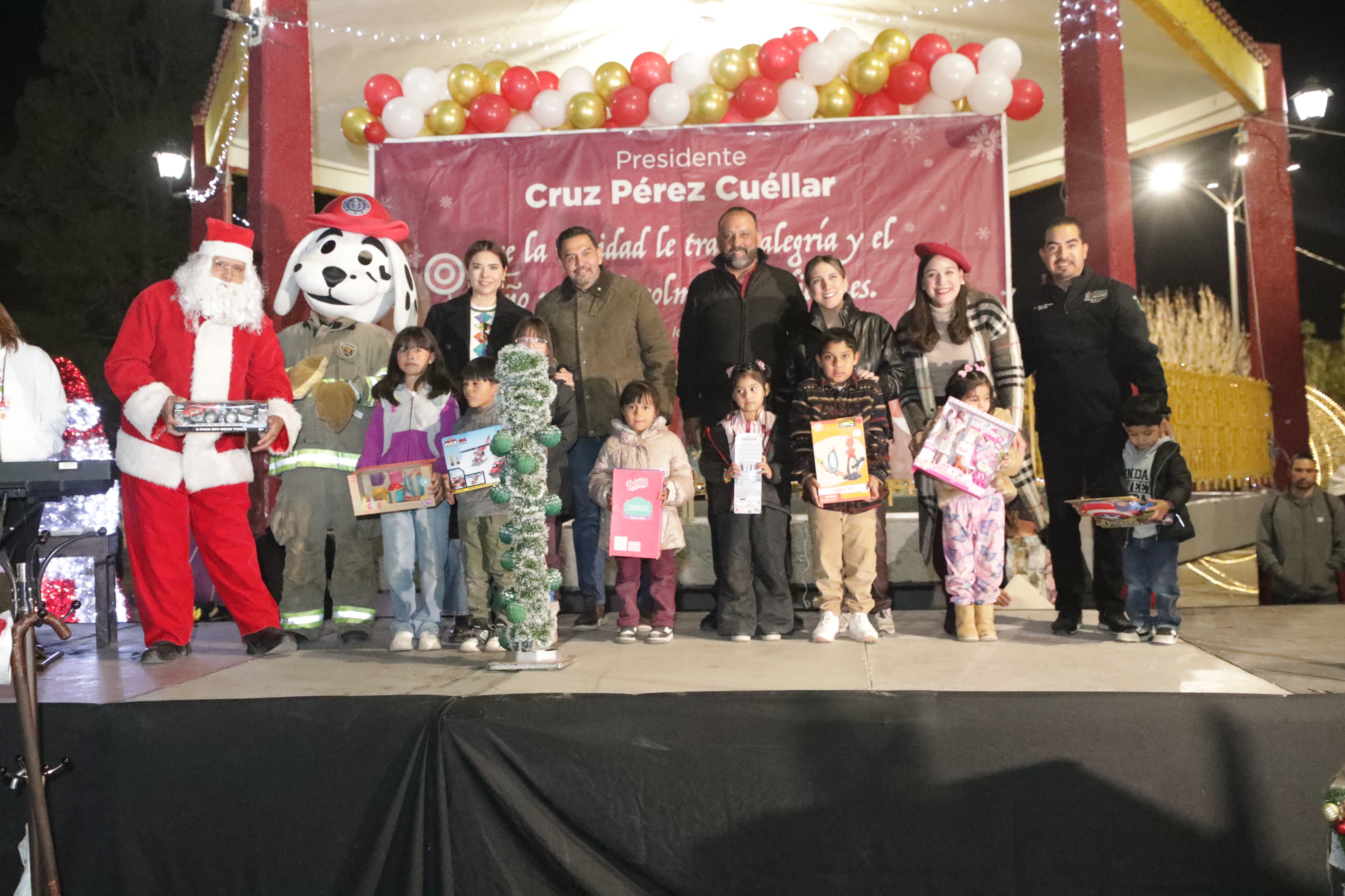En un ambiente familiar y festivo, el Presidente Municipal, Cruz Pérez Cuéllar, encabezó el tradicional encendido de luces y del árbol navideño en el Parque Borunda, además realizó una entrega simbólica de juguetes.