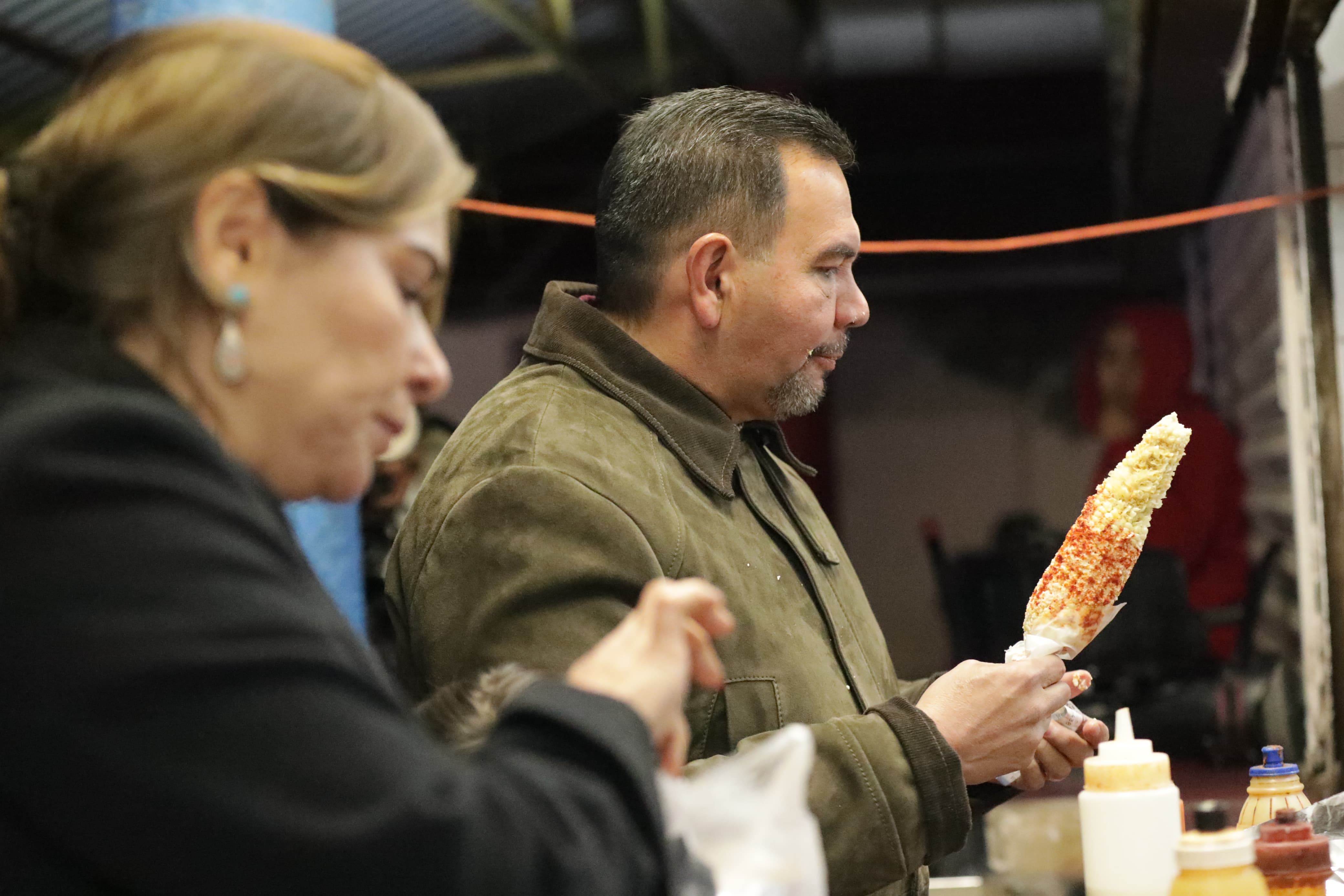 Durante el convivio, los asistentes disfrutaron de champurrado, tamales y pan dulce, además aprovecharon las figuras navideñas para tomarse fotografías.