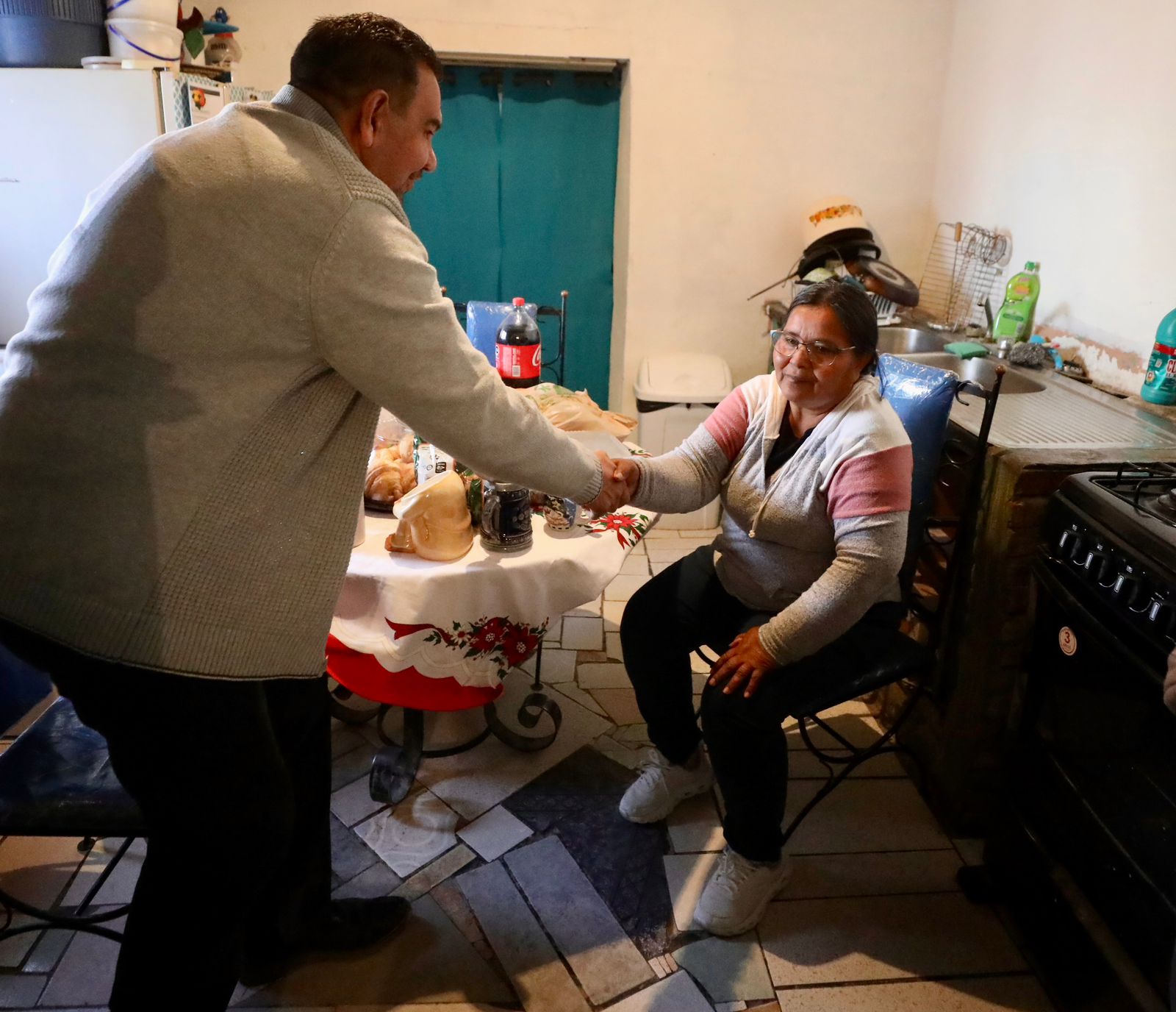 El alcalde visitó a las señoras María de Jesús López, Georgina Heredia y Rosa María Negrete, a quienes llevó insumos y apoyo para la cena con sus seres queridos, además de compartir unos momentos de diálogo directo.