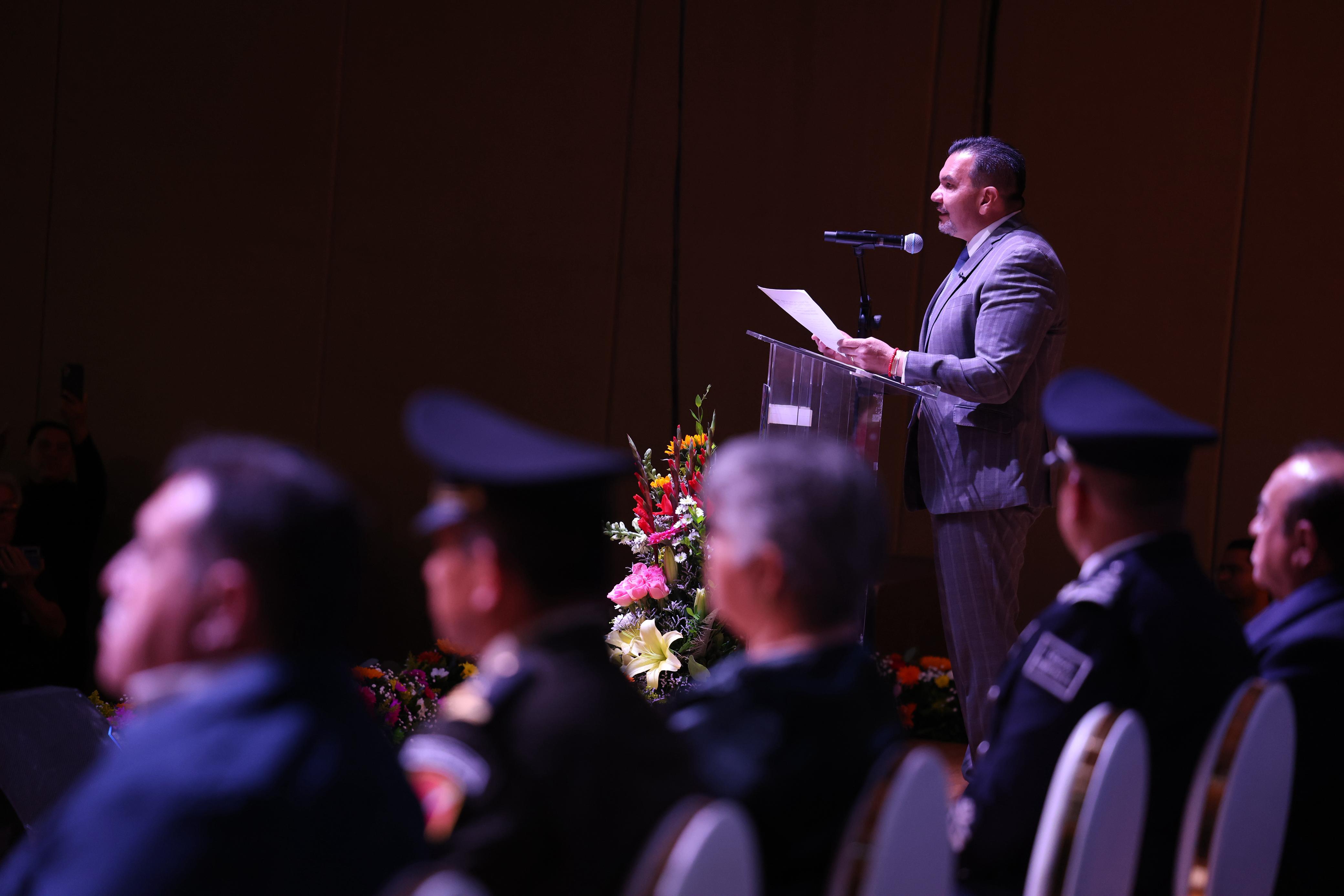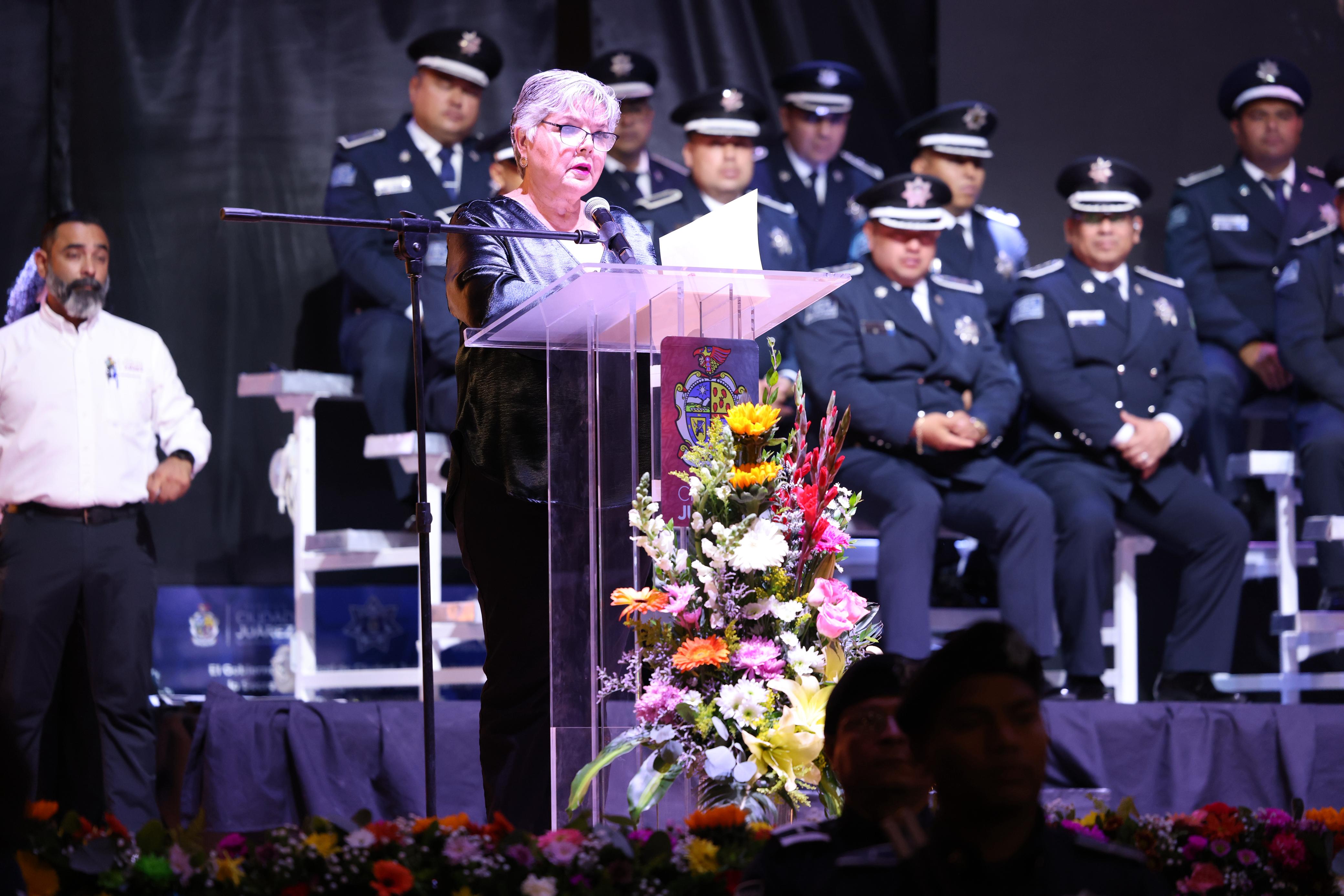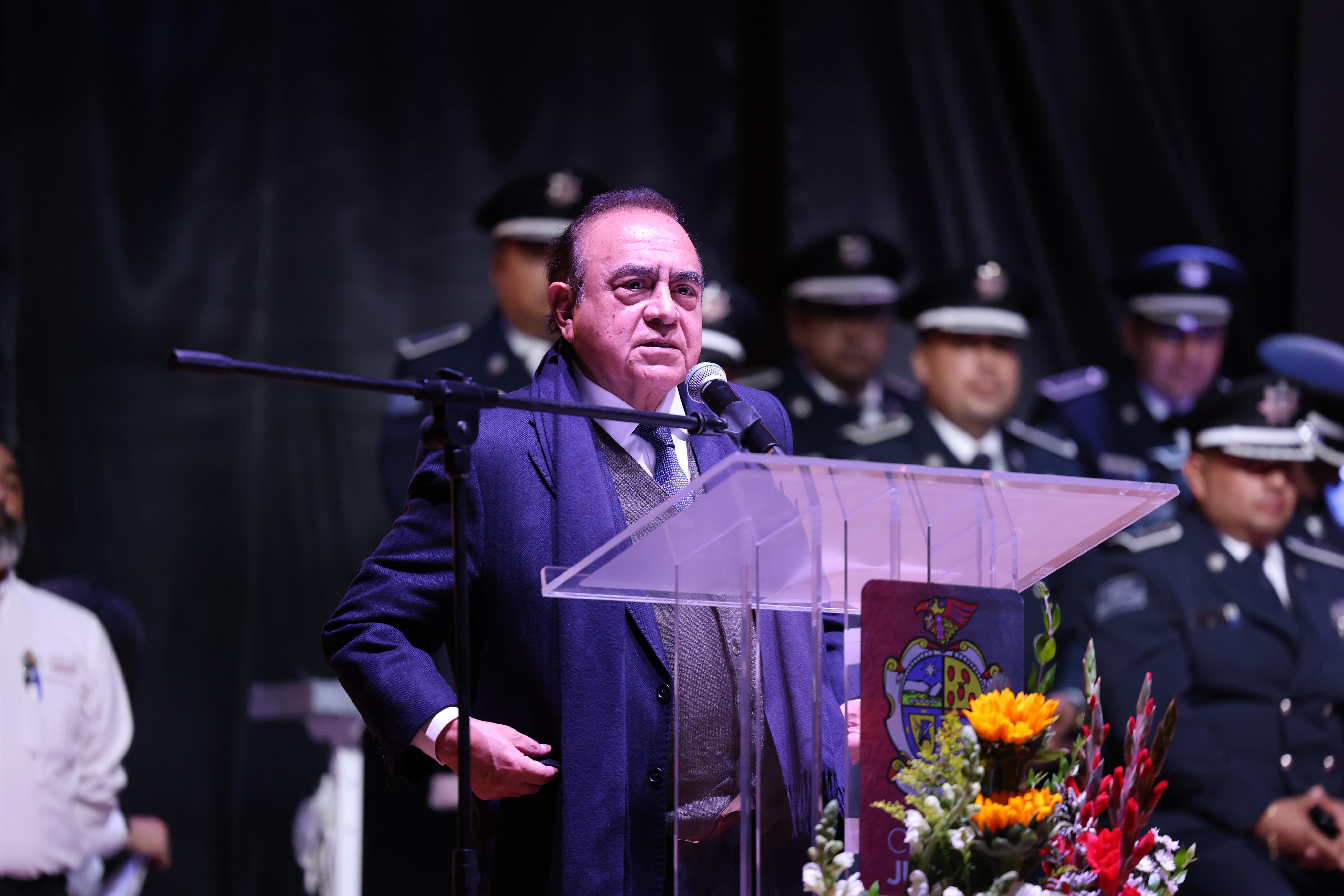 "Compañeras y compañeros policías, ustedes representan la fortaleza de Juárez, la valentía que no se rinde y la esperanza que todos compartimos de vivir en una comunidad más justa, más tranquila y más segura, sigan trabajando con la convicción de que su labor transforma vidas, porque ustedes corren riesgos que otros no corremos y hacen sacrificios que otros no hacemos”, dijo el alcalde Pérez Cuéllar.