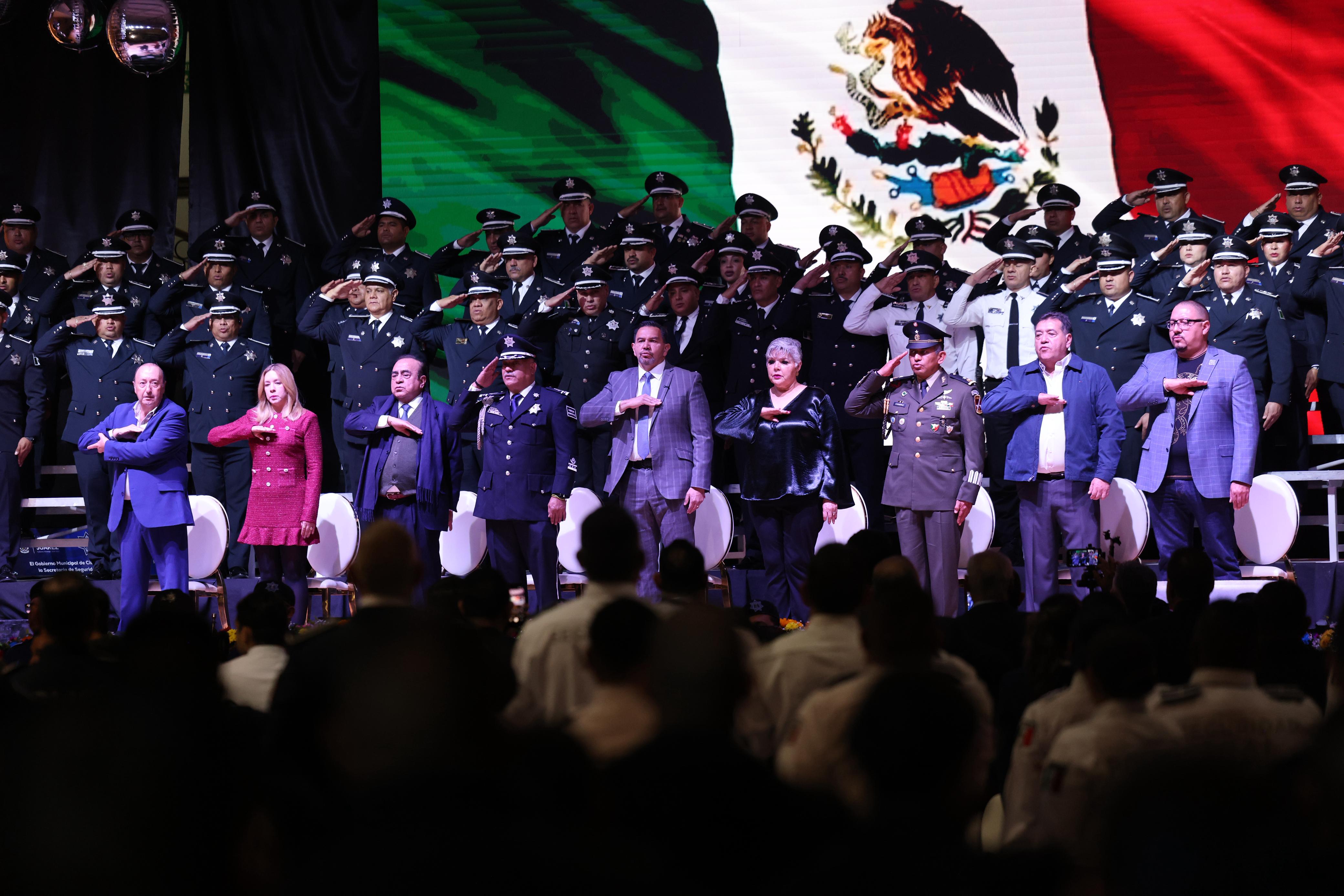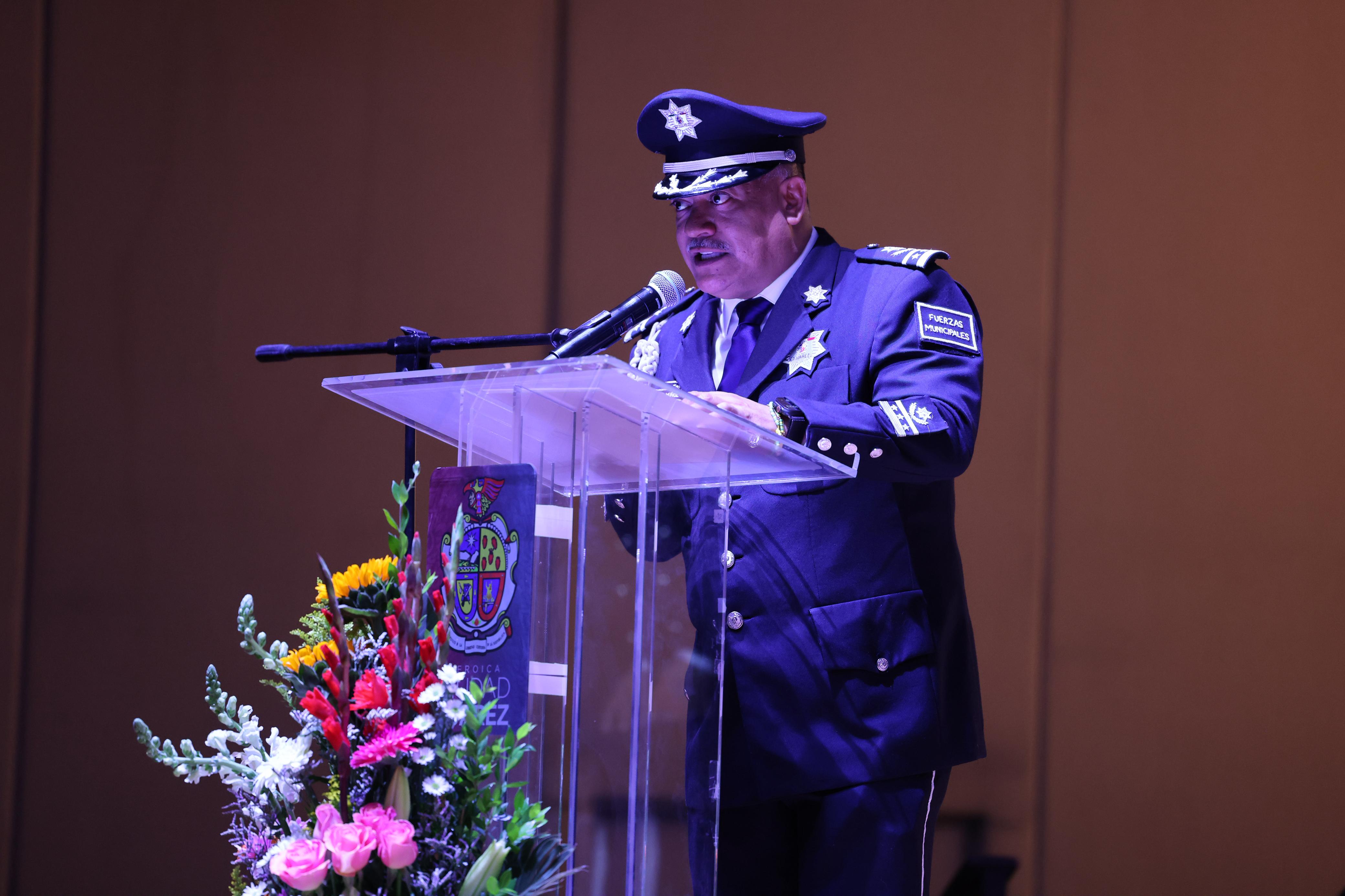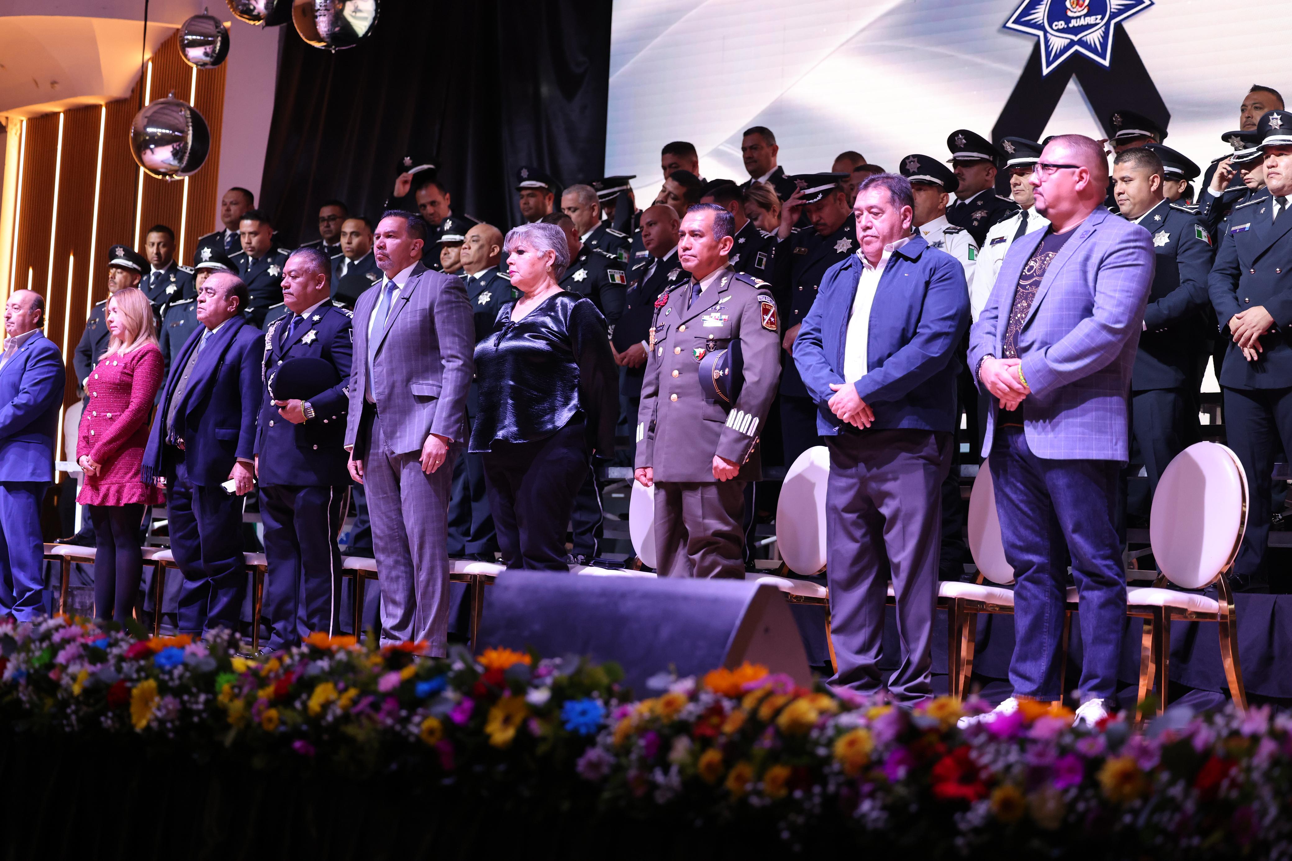 "Celebramos el valor de quienes con su trabajo permiten que Juárez siga adelante, a nuestras y nuestros policías, gracias, gracias por levantarse cada día con la determinación de proteger a quienes ni siquiera conocen", expresó el alcalde.