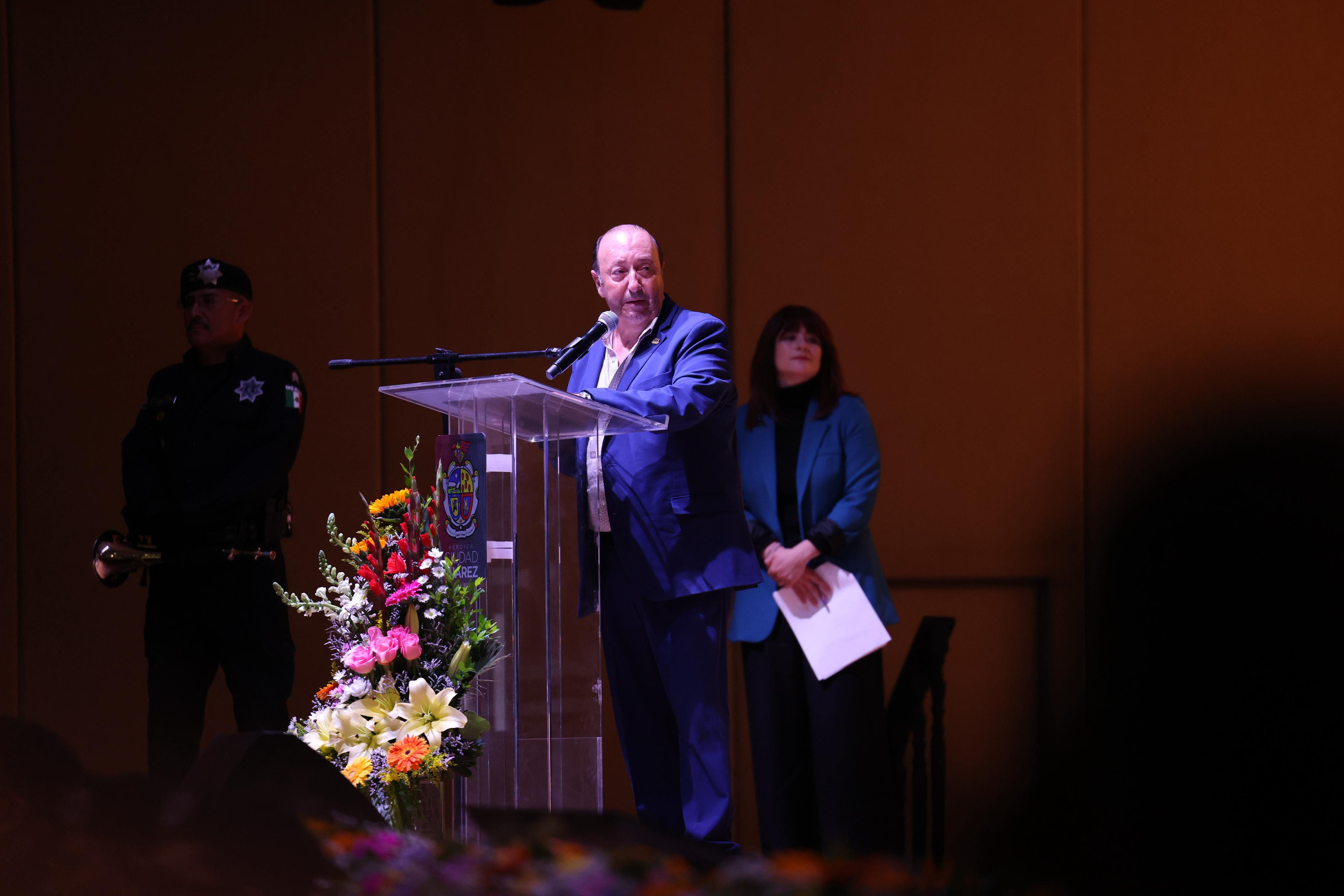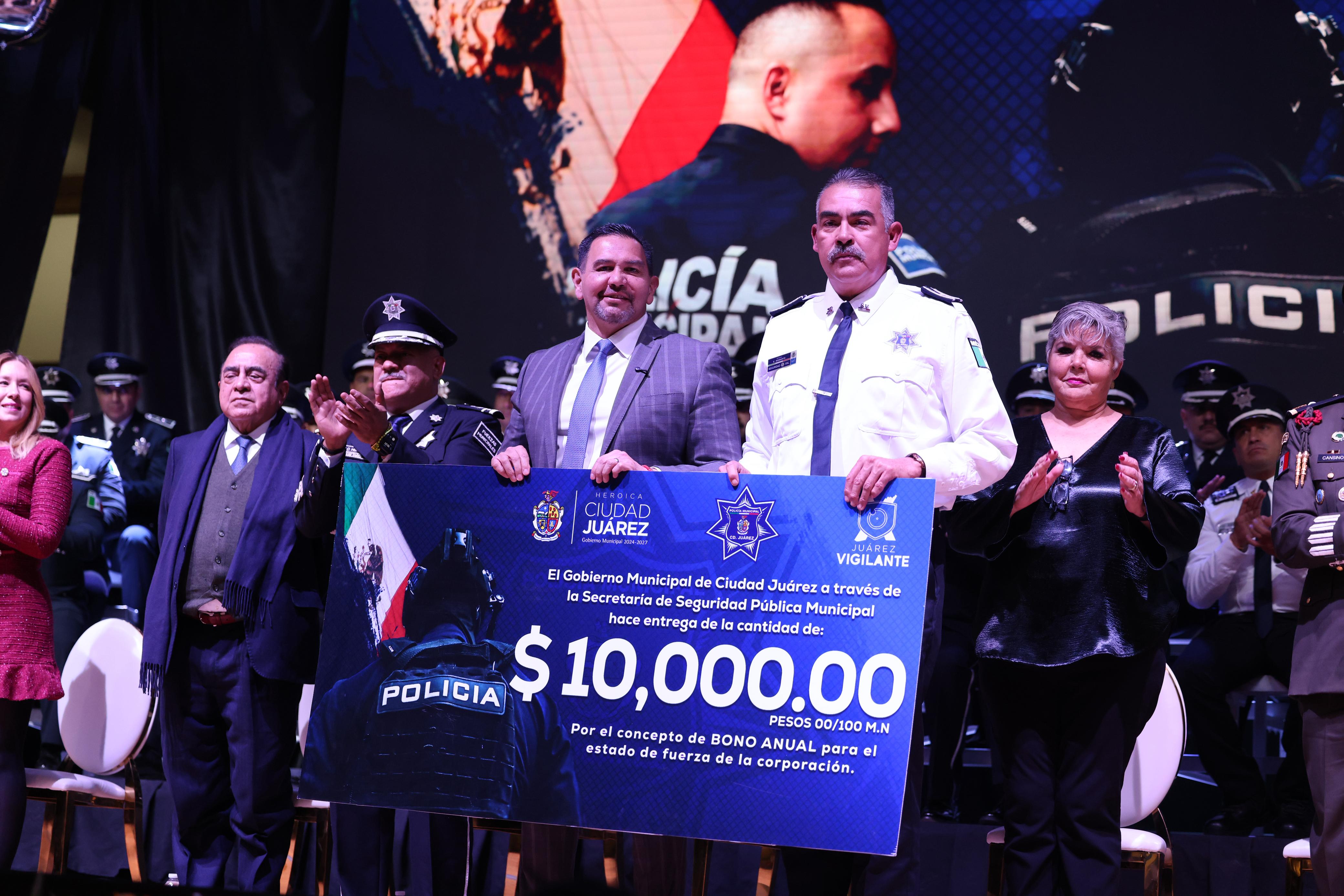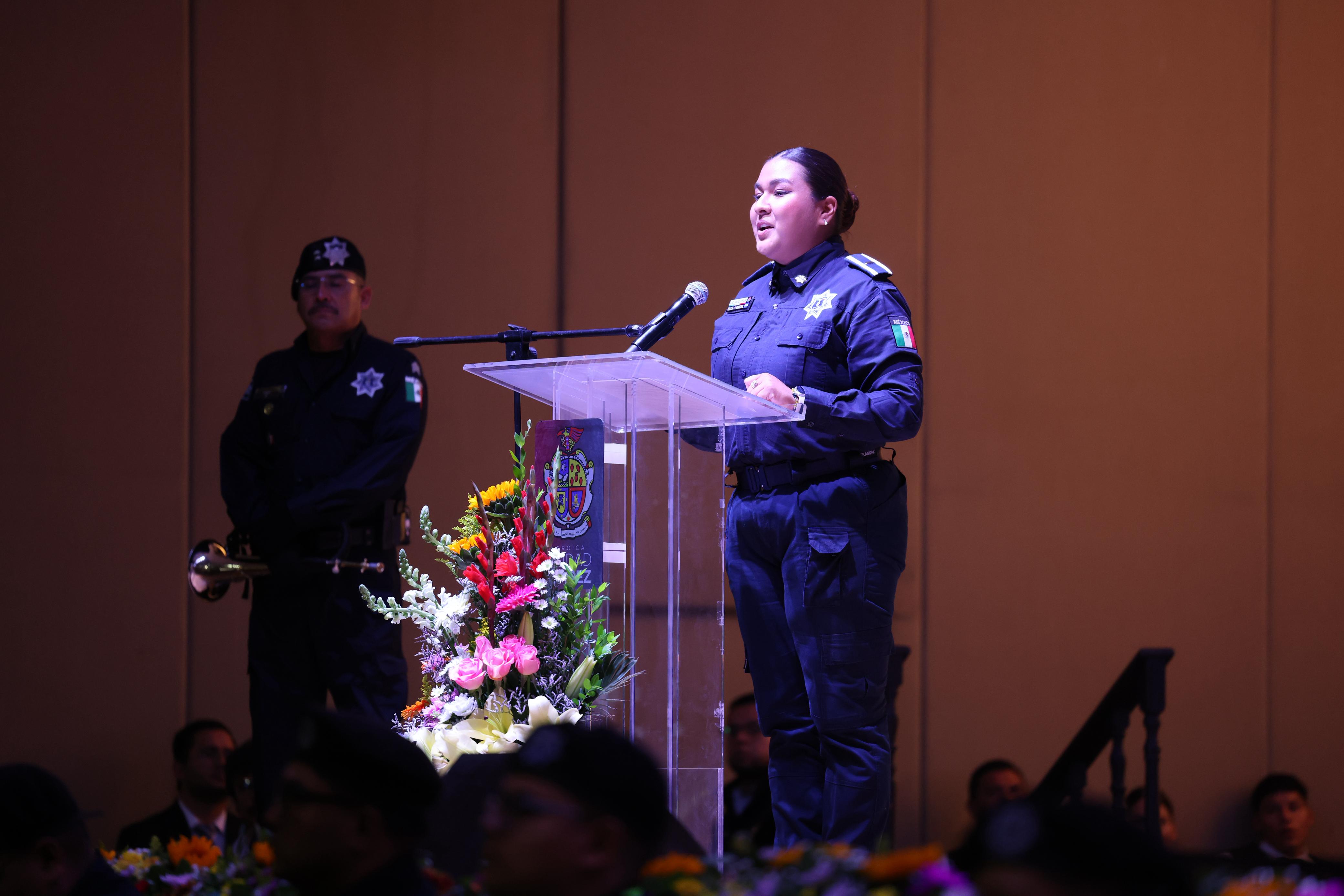 "Celebramos el valor de quienes con su trabajo permiten que Juárez siga adelante, a nuestras y nuestros policías, gracias, gracias por levantarse cada día con la determinación de proteger a quienes ni siquiera conocen", expresó el alcalde.