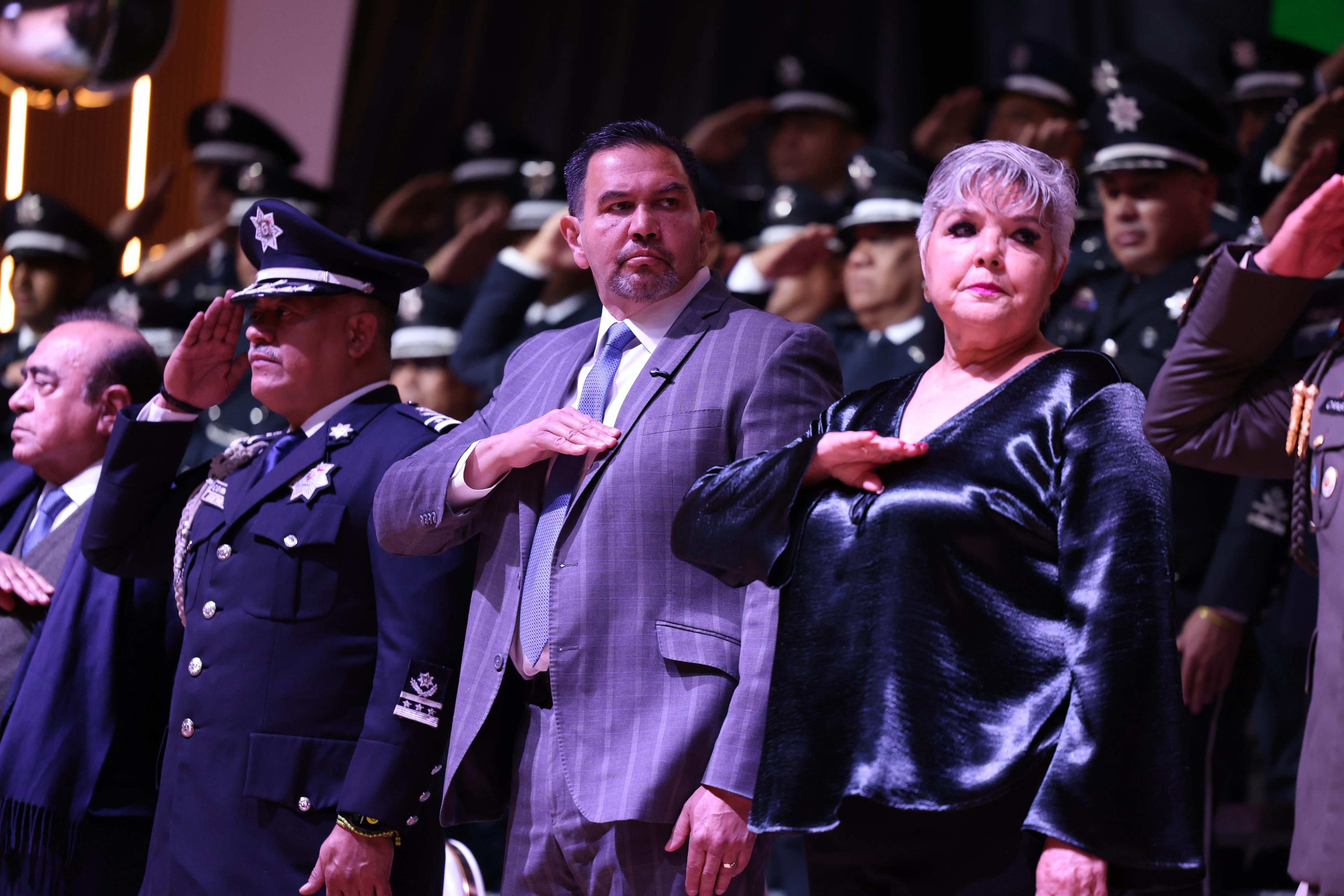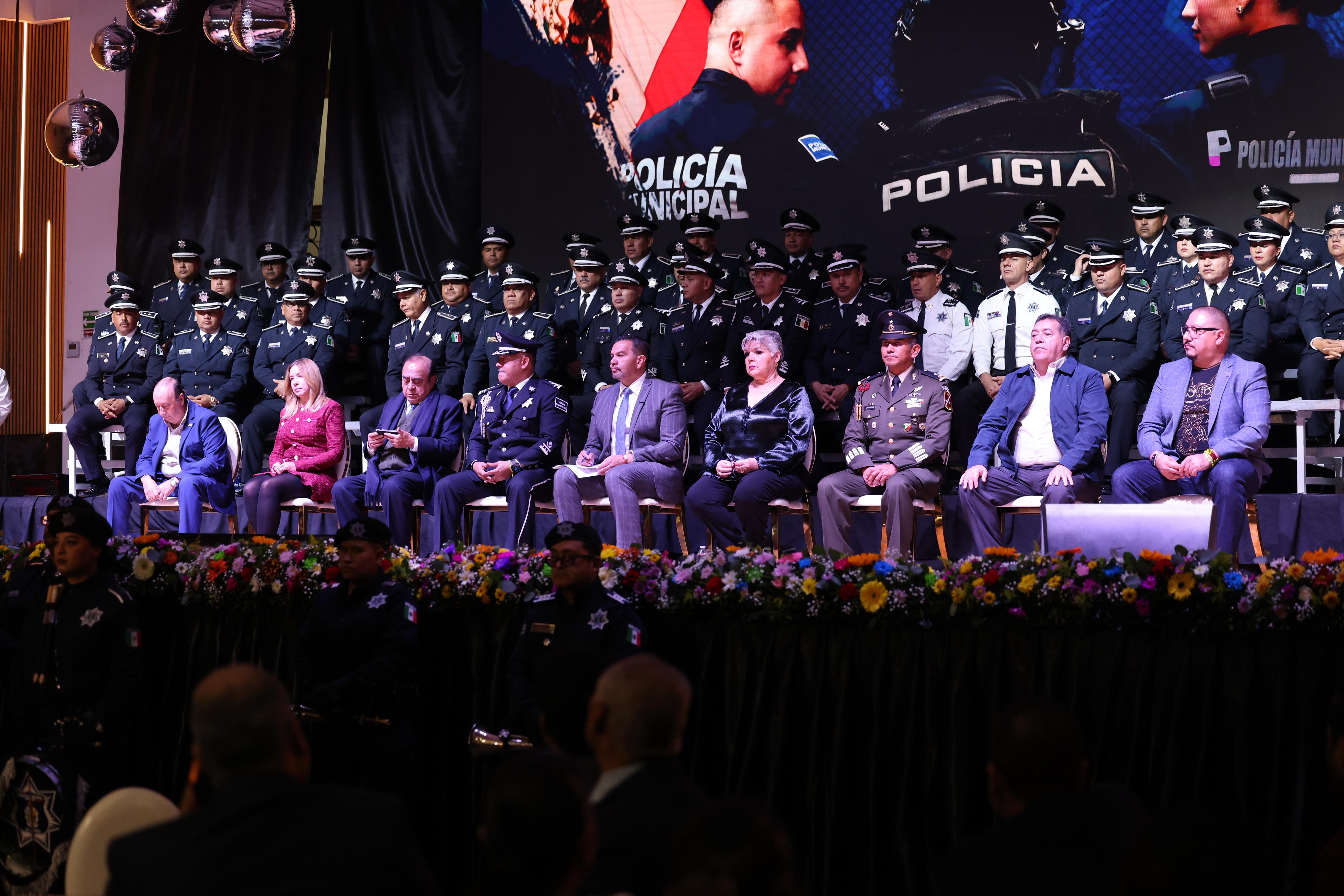 Hoy es un día muy significativo porque se reconoce el compromiso de policías que portan con honor y orgullo su uniforme, afirmó el Presidente Municipal, Cruz Pérez Cuéllar en el evento del Día del Policía.