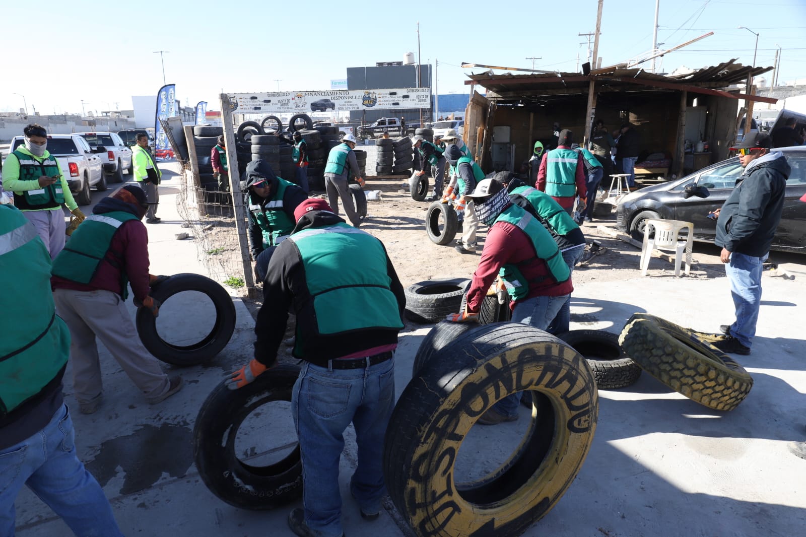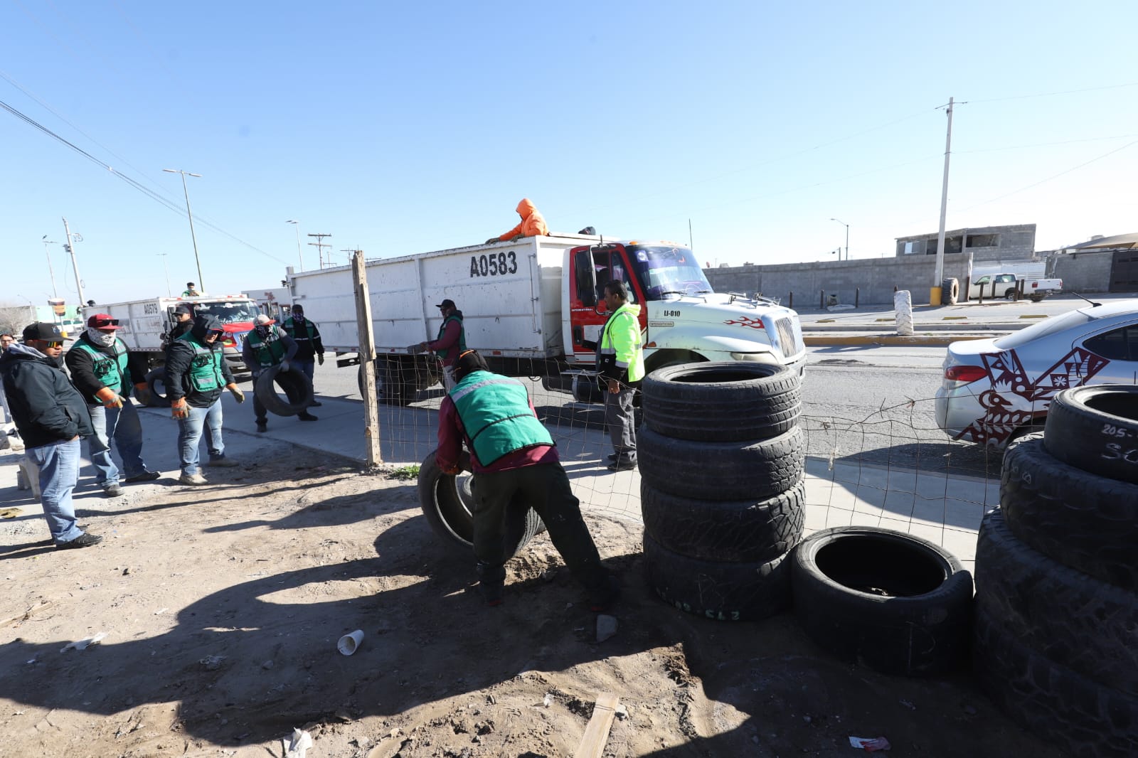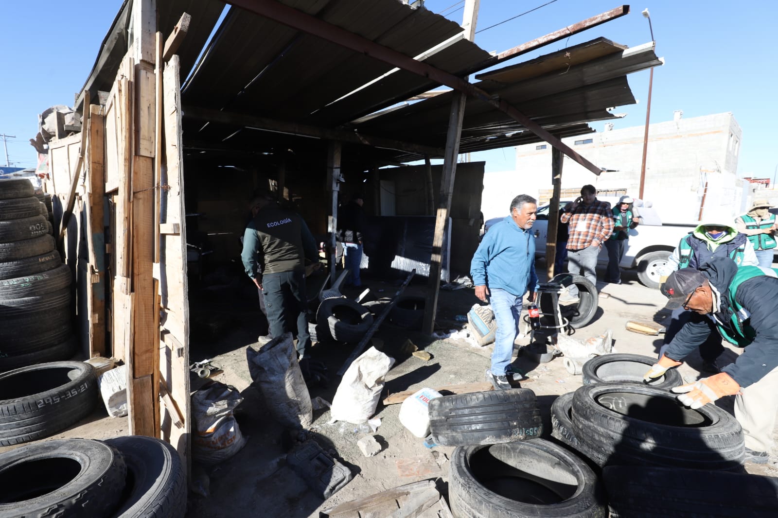La Dirección de Ecología, a través de su área de Inspección y Vigilancia participó en el operativo retirando las llantas y los vehículos para recuperar el espacio, además aplicó una sanción de 100 UMAS por la contaminación visual y contaminación al suelo natural con desechos de aceite de vehículos.