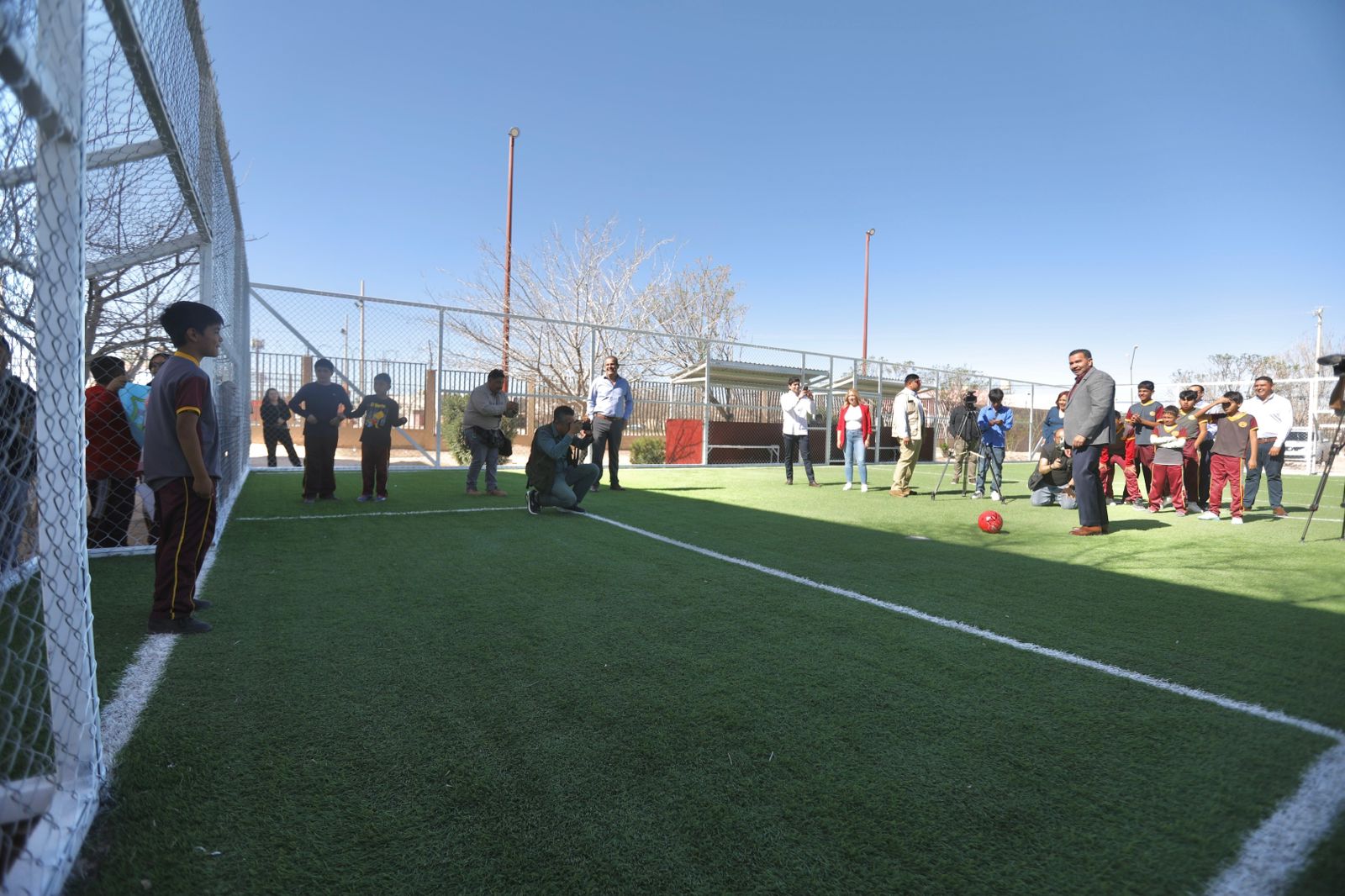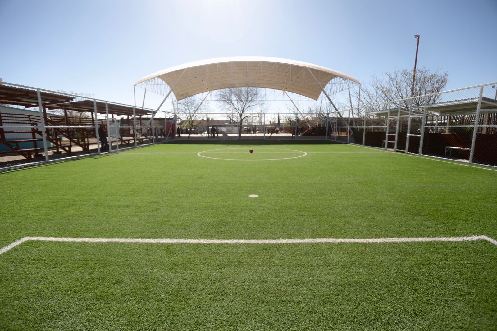 Explicó que en algunos planteles se ha construido más de una obra, por ejemplo en la Forjadores de la Patria se construyó un domo y en esta ocasión se entregó una cancha de futbol de primer nivel para beneficio de las y los estudiantes.