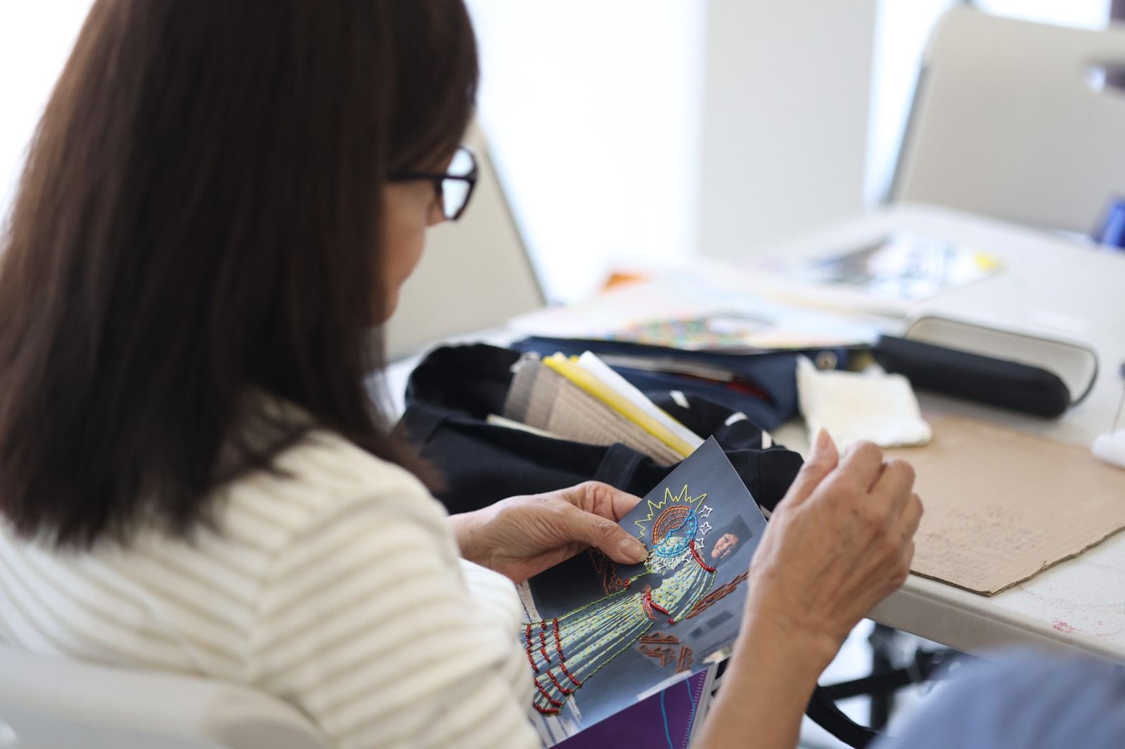 Durante la sesión, Ogla Liset Olivas, encargada de la Dirección General del IPACULT, destacó la participación y el entusiasmo de las asistentes, quienes encontraron en el taller un lugar para compartir experiencias y generar vínculos a partir de la creación artística. Señaló que varias participantes se acercaron por primera vez a esta técnica, lo que permitió abrir nuevas posibilidades para expresarse desde la imagen, el bordado y el uso del color.