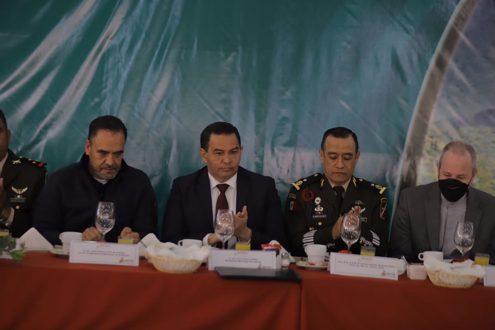 En el desayuno estuvieron presentes el coronel de CaballerÃa Diplomado del Estado Mayor, Remigio Cruz DomÃnguez, comandante del Noveno Regimiento de CaballerÃa Motorizado; el cónsul de Estados Unidos en Juárez, Eric S. Cohan; el cónsul de México en El Paso, Mauricio Ibarra; el delegado estatal de Programas para el Desarrollo, Juan Carlos Loera; Fabián Fourzán Trujillo, presidente municipal de Ahumada; Ricardo Lozoya, presidente municipal de Práxedis G. Guerrero, Ã?scar Ibáñez, representante de Gobierno del Estado, entre otros invitados especiales.