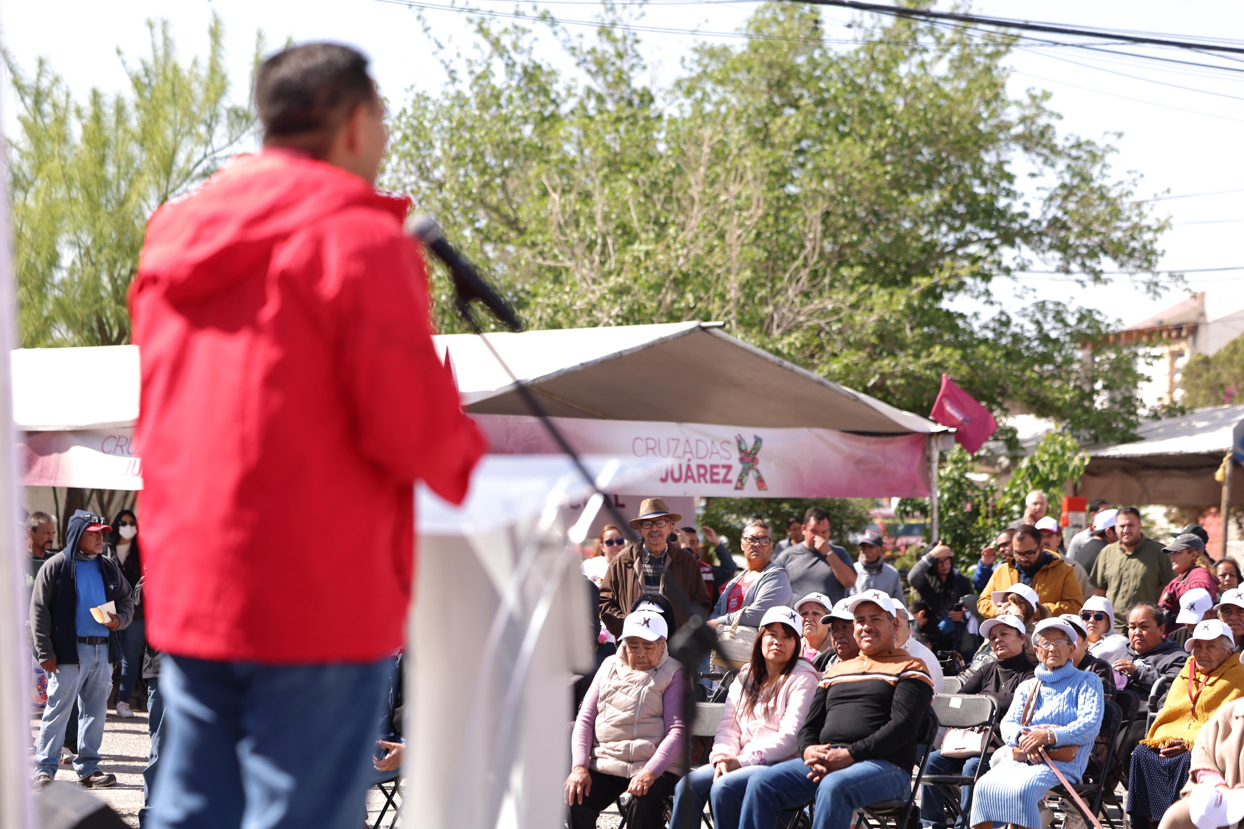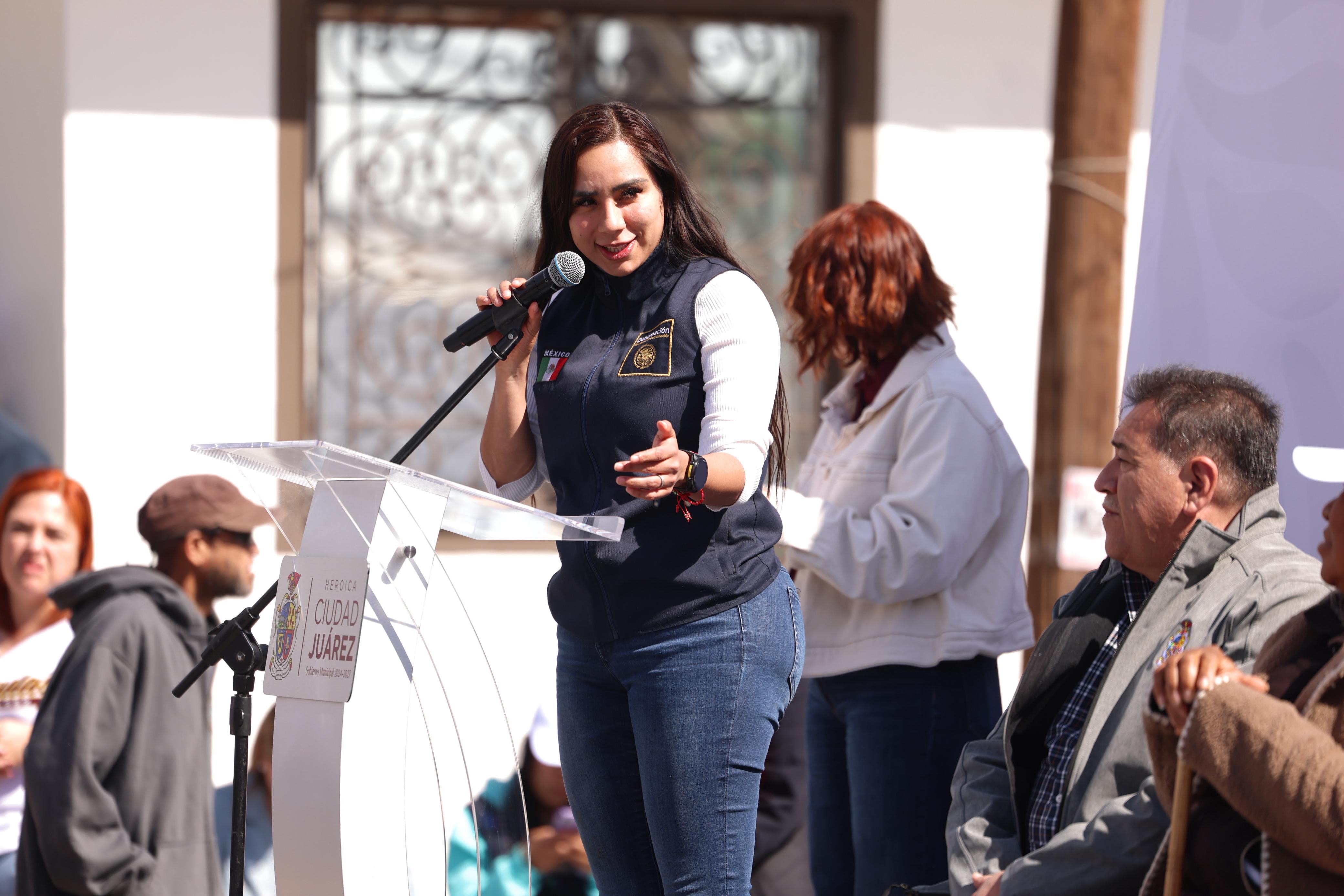 “Ahora tenemos un grupo prioritario que tenemos que atender, que son los jóvenes, los niños, las niñas, ya que tenemos una serie de buenas noticias para Ciudad Juárez por parte de la presidenta de México, nuevas escuelas, nuevos parques, nuevas canchas de fútbol”, señaló.