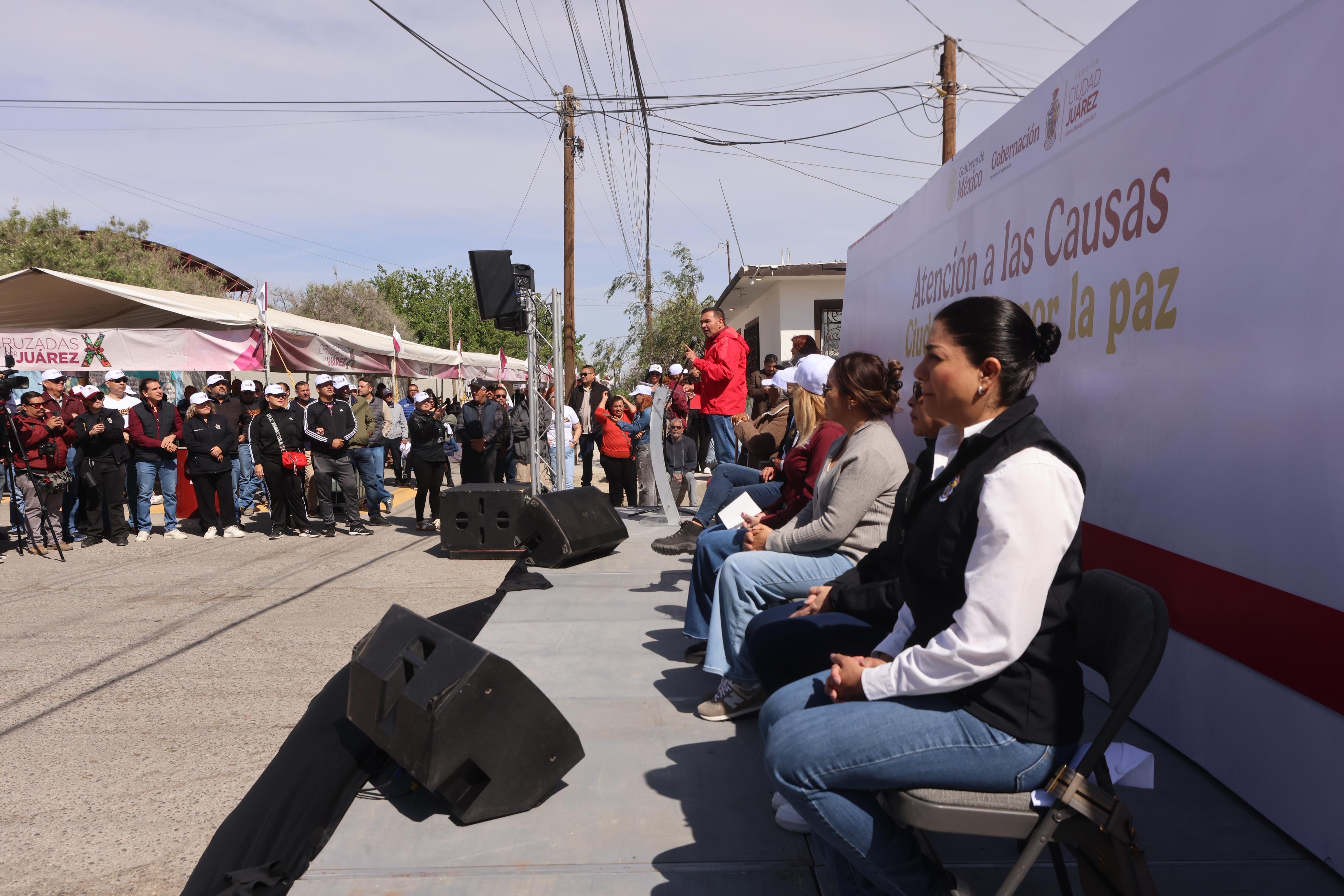 “Como ustedes saben, la presidenta de México, Claudia Sheinbaum Pardo, quiere mucho a Ciudad Juárez y le encargó a la secretaria de Gobernación, Rosa Isela Rodríguez y a la subsecretaria Rocío Bárcena, por intervenir en colonias que queremos que sean territorios de paz de la estrategia de seguridad que tiene el gobierno de México”, mencionó.