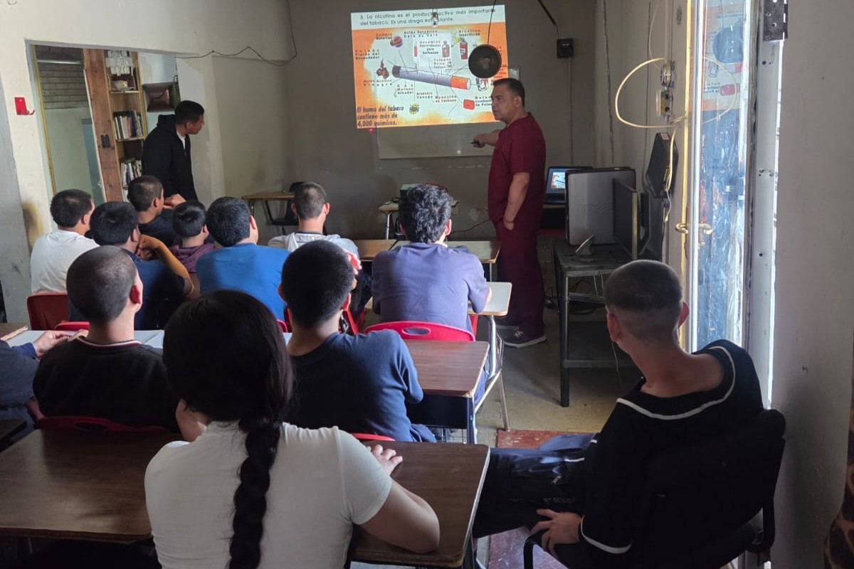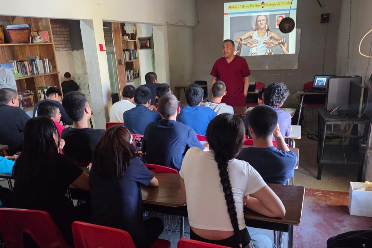 Con el objetivo de fortalecer la prevención de adicciones en jóvenes, la Dirección de Salud Municipal impartió una plática informativa sobre tabaco y alcoholismo a adolescentes del internado Integración y Formación para Adolescentes “El Camino”.