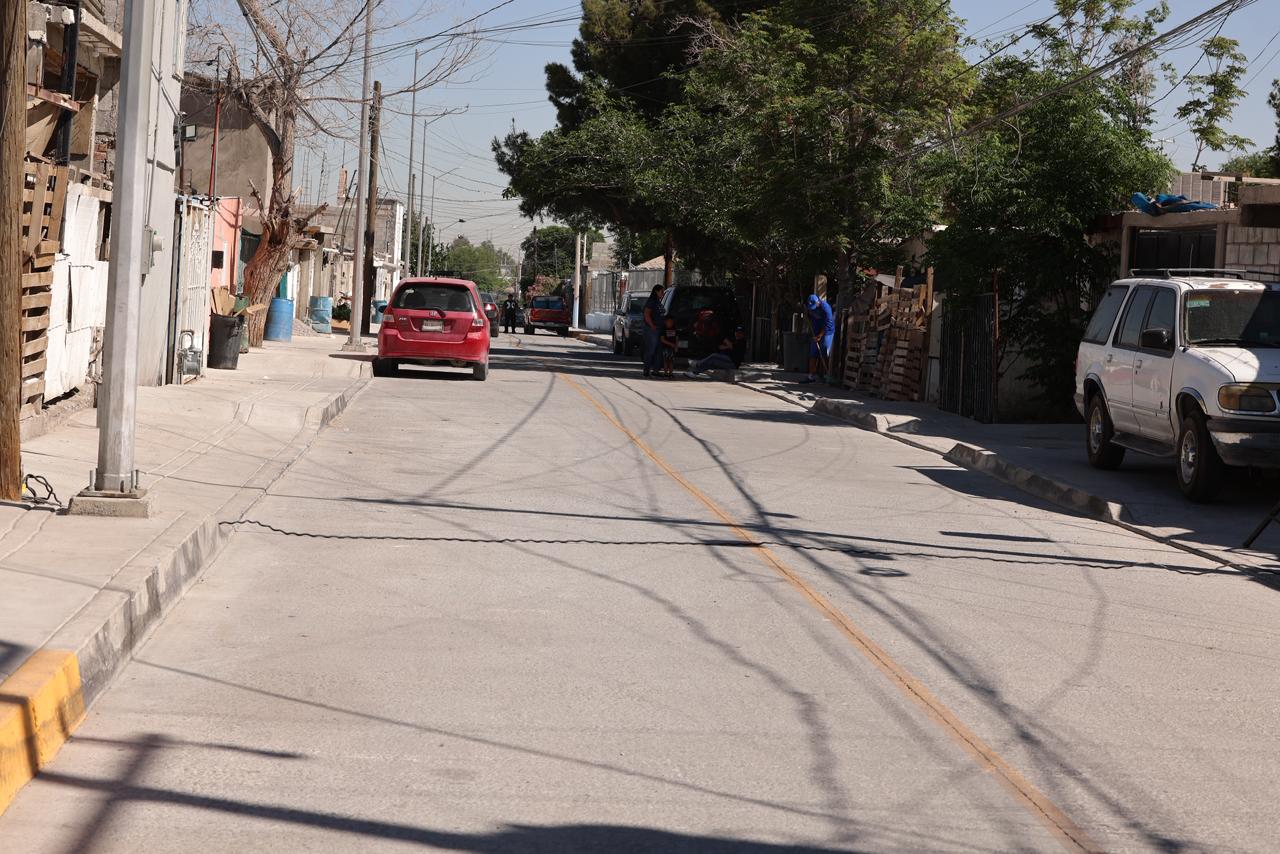 La vialidad intervenida abarca el tramo de la calle Sierra de Janos hasta Arroyo Jarudo, con una superficie de más de mil 500 metros cuadrados, donde se ejecutaron trabajos integrales que incluyen pavimentación con concreto hidráulico, introducción de agua potable y alcantarillado, banquetas, alumbrado público, pintura y señalización.