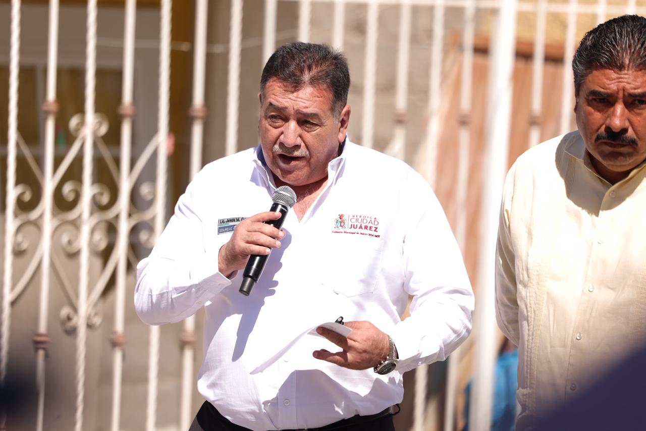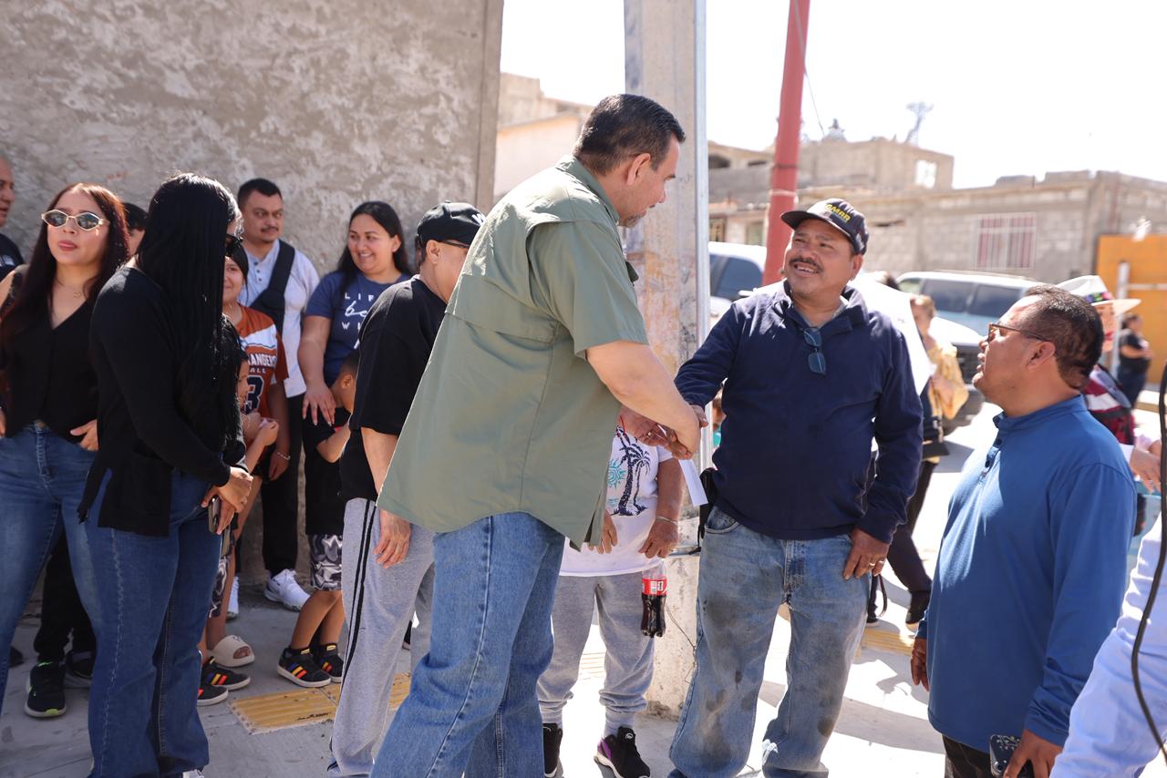 El Presidente Municipal, Cruz Pérez Cuéllar, encabezó este día la entrega de la pavimentación de la calle Irving Flores, obra realizada a través del esquema de Presupuesto Participativo y que beneficiará directamente a residentes del sector.
